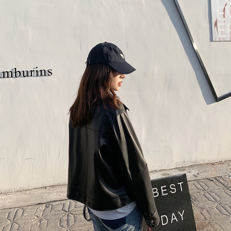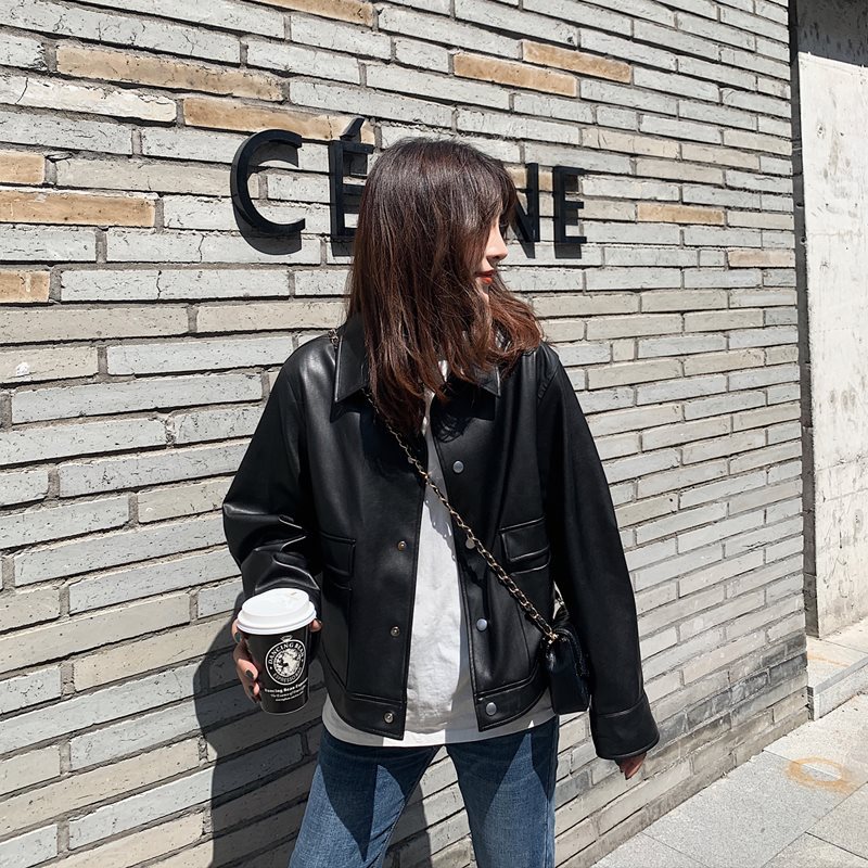 2024 New Small Leather Jacket Women's Short Spring and Autumn Korean Style Loose Casual Black PU Biker Leather Jacket Trendy