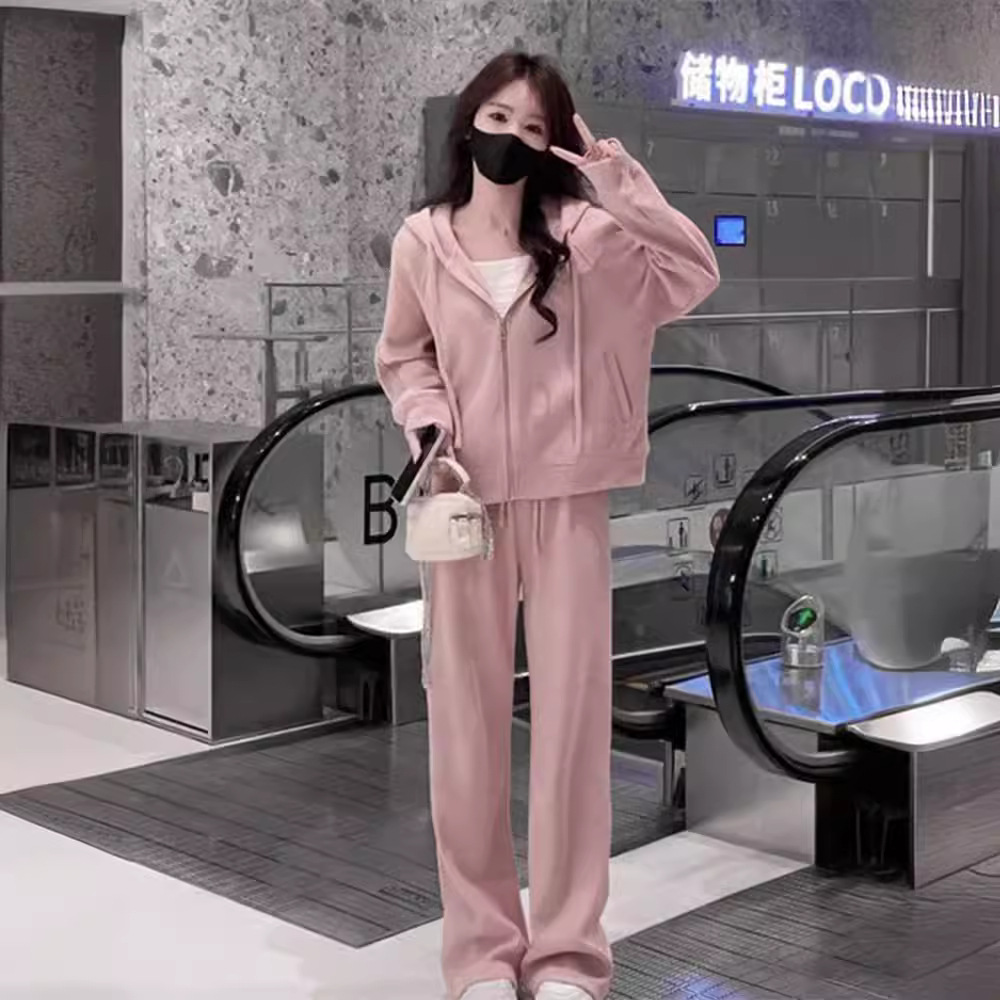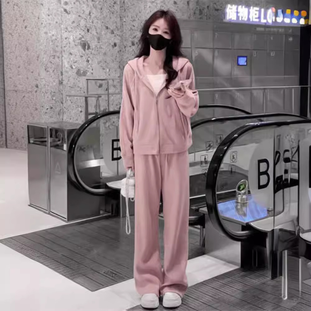 2024 new small milk department wear a set of women's early spring pink casual sports sweater two-piece suit
