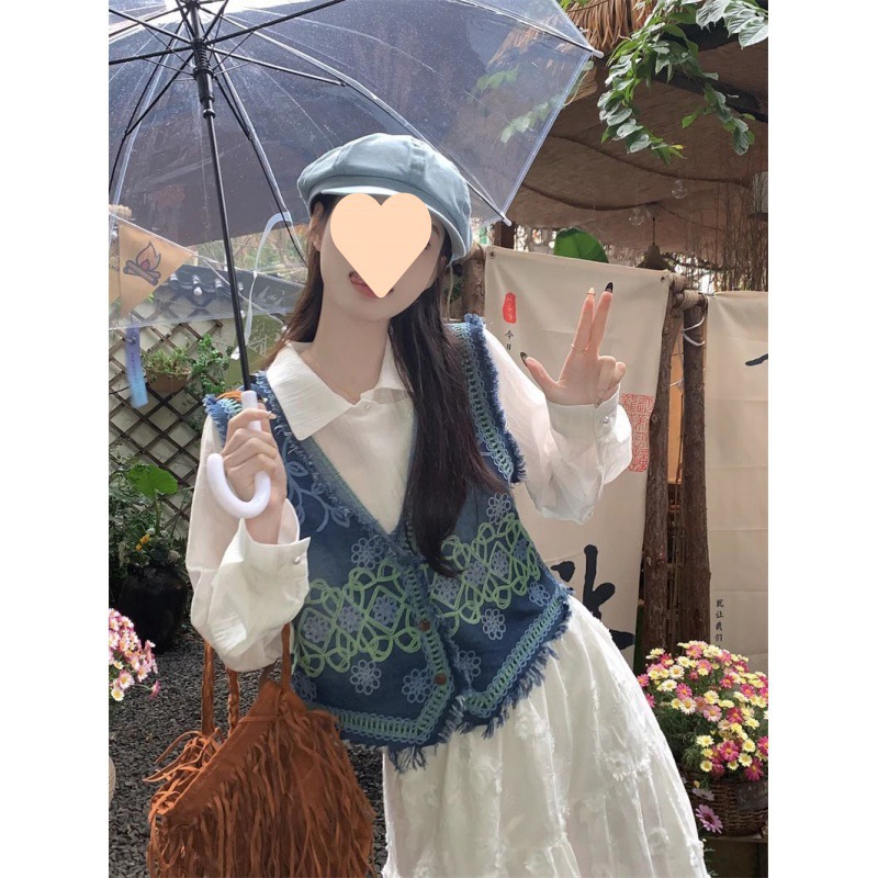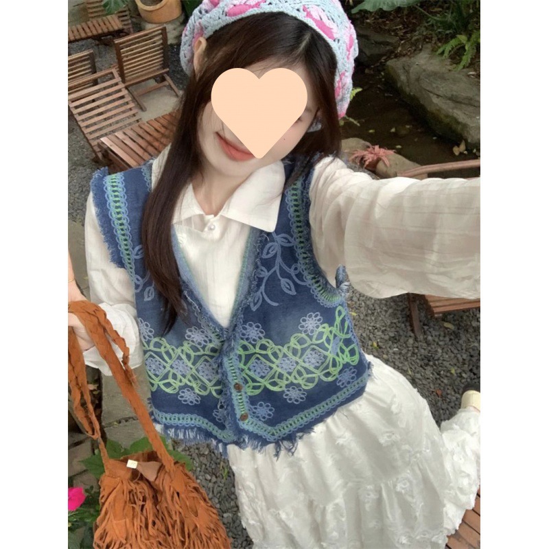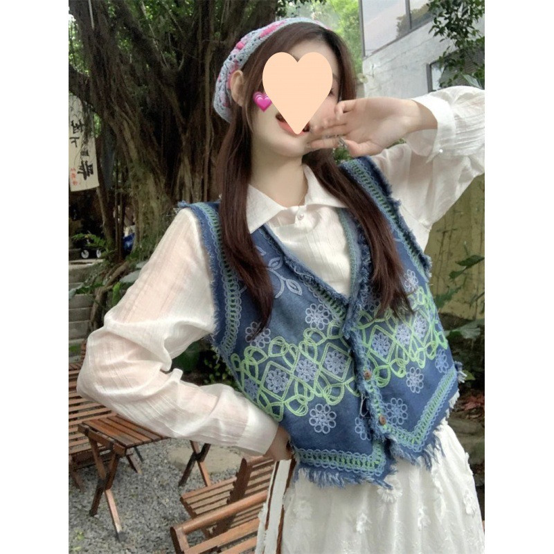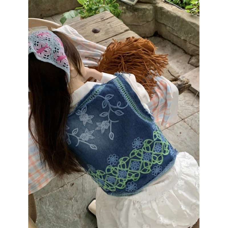 | nameOriginal | 2024 New Spring and Summer Denim Embroidered Vest Heavy Industry Vest Crochet Sleeveless Collar Stacked Shirt Outer Top |