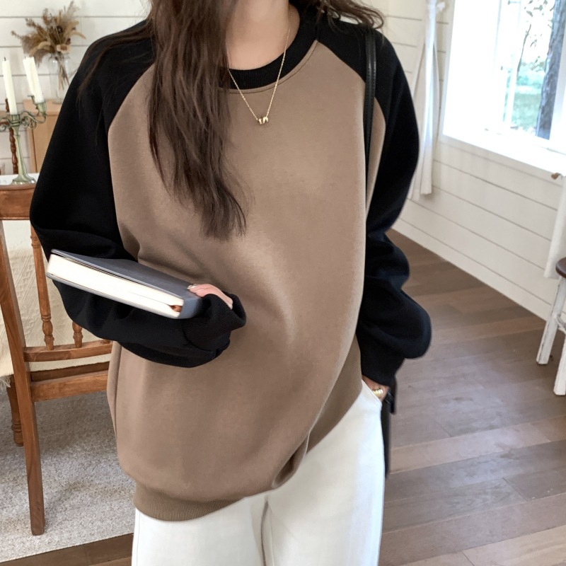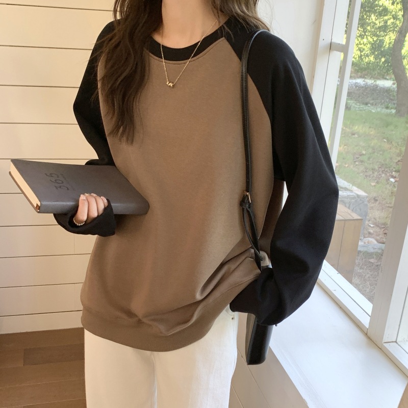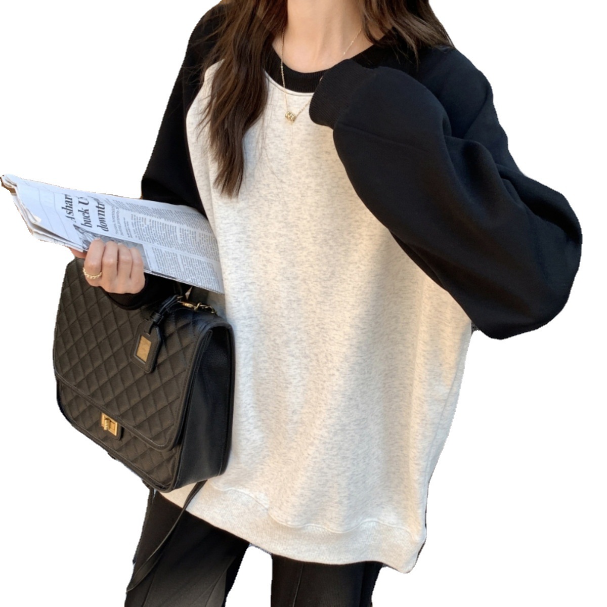 | nameOriginal | 2024 new spring/autumn winter American retro raglan sleeve contrast color round neck sweater coat women's plus size casual top |