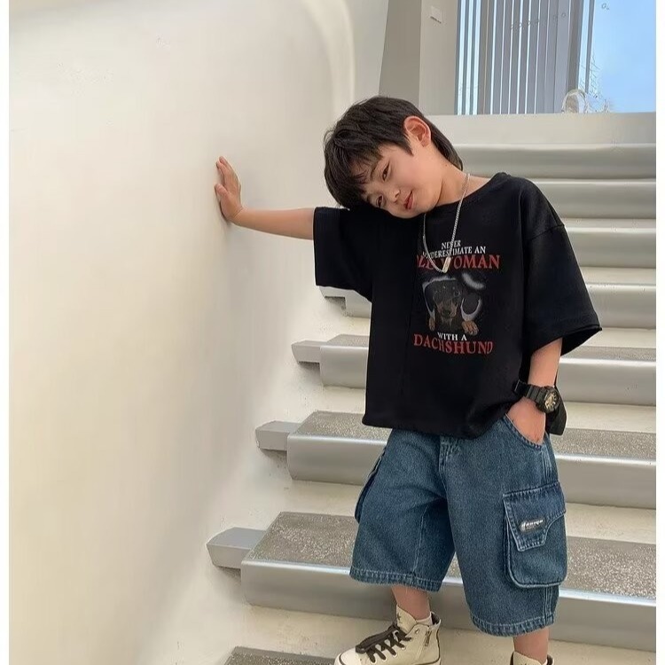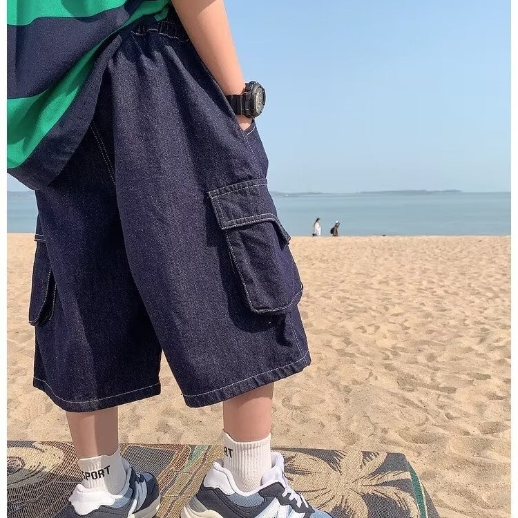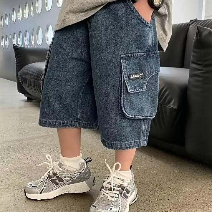 | nameOriginal | 2024 New Striped Five-point Jeans Big Kids Loose Straight Summer Thin Mid-length Trousers Trendy Brand Casual Shorts |