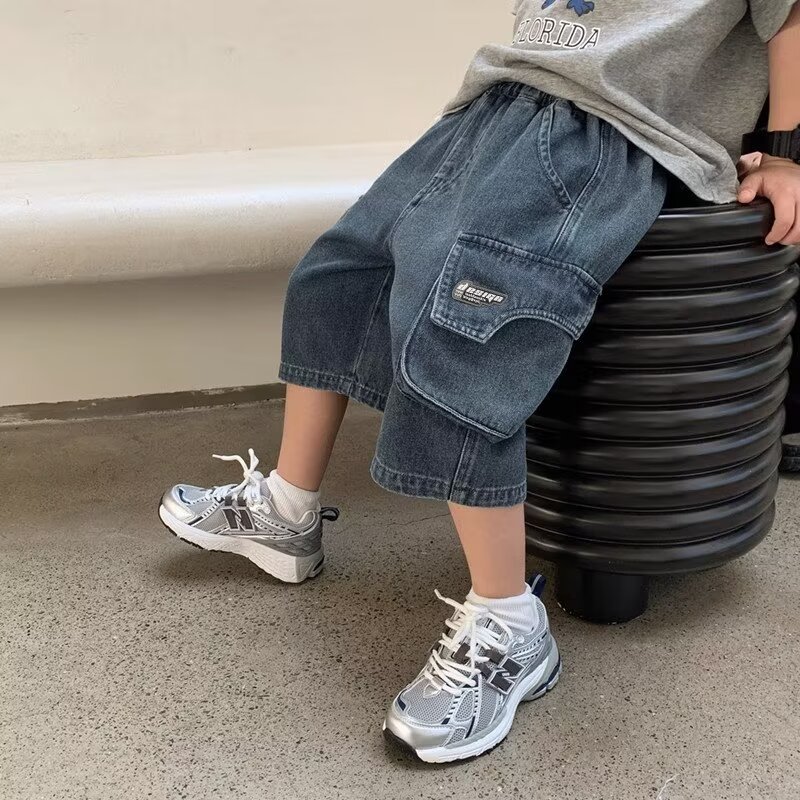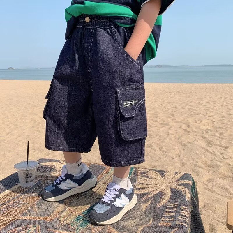 | nameOriginal | 2024 New Striped Five-point Jeans Big Kids Loose Straight Summer Thin Mid-length Trousers Trendy Brand Casual Shorts |