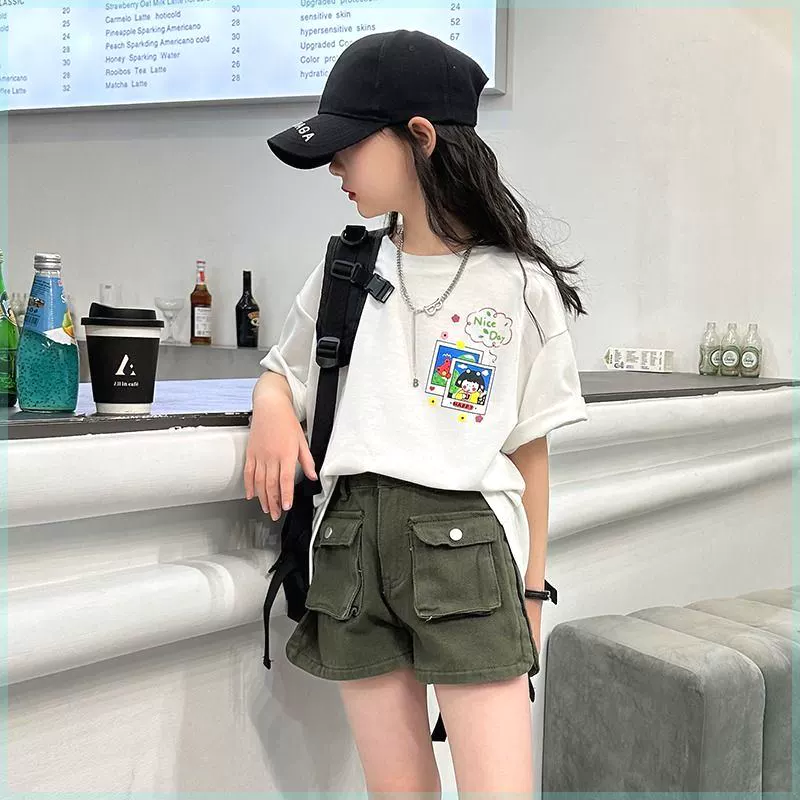 2024 new style cartoon round neck short-sleeved T-shirt for middle and large children