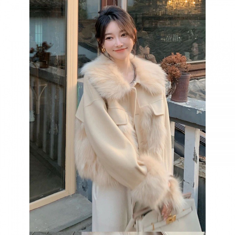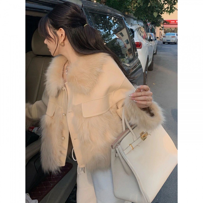 2024 New Style Chanel Style Fashion Sense Fur One-piece Short Anti-fur Wool Coat Women's Autumn and Winter