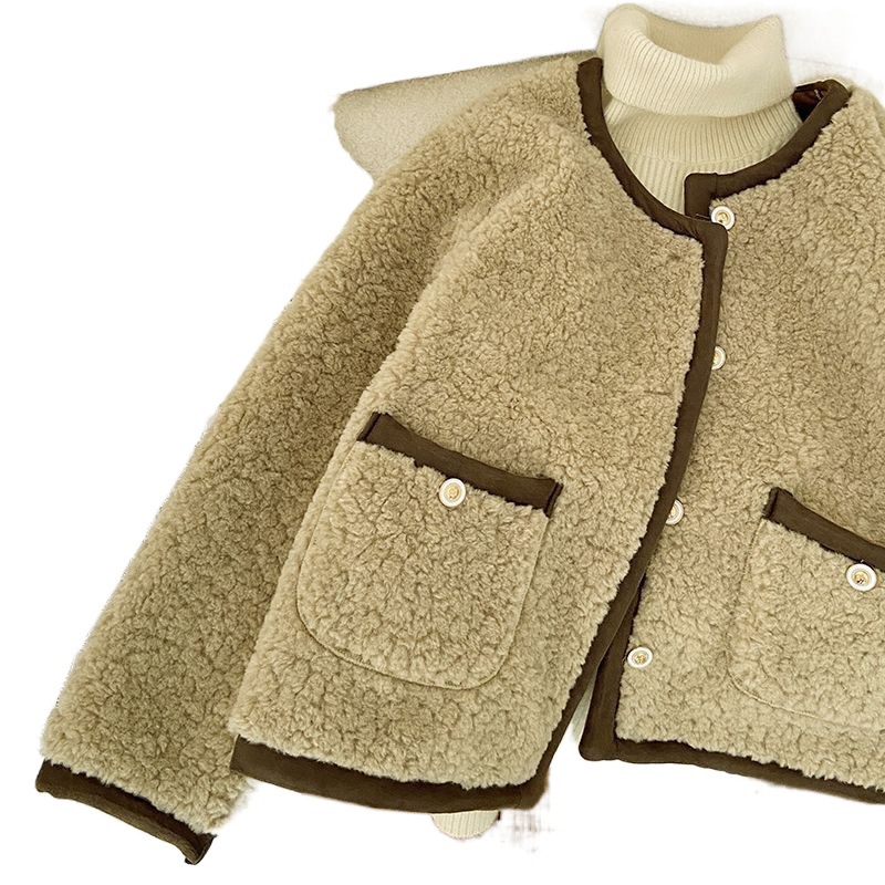 | nameOriginal | 2024 New Style Chanel Style Lambswool Coat Women's Autumn and Winter Contrast Fur One Lambswool Short Coat Top |