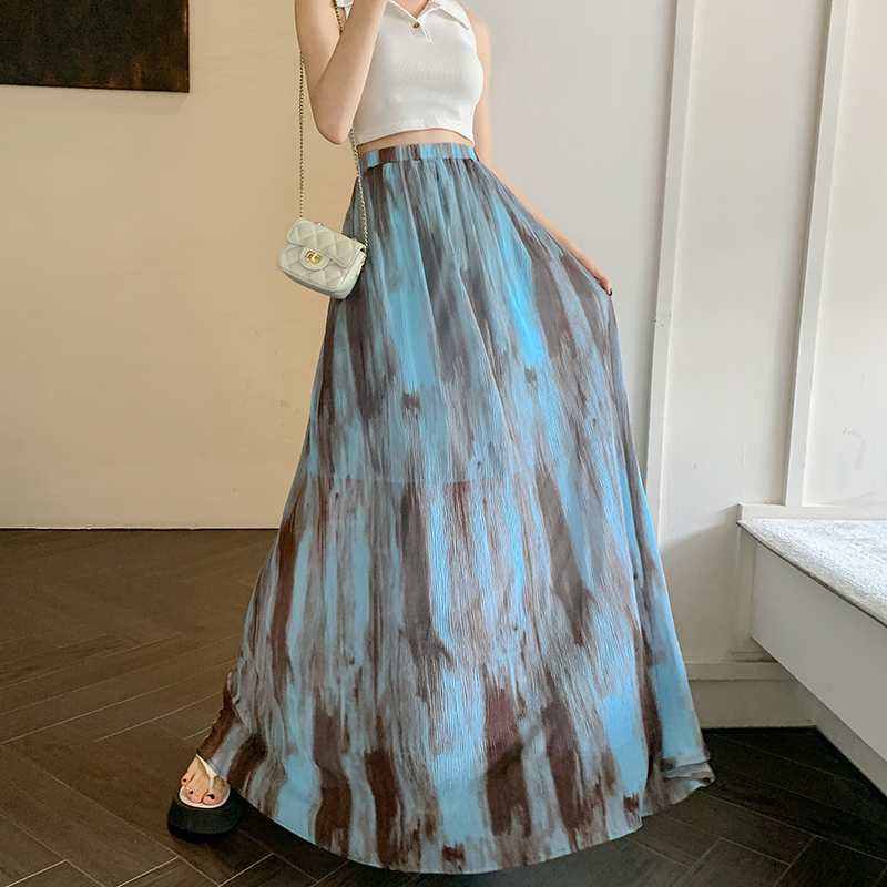 | nameOriginal | 2024 New Style Elegant Tie-Dye Pleated Skirt Women's Summer Tall Draped Long Skirt High Waist Skirt |