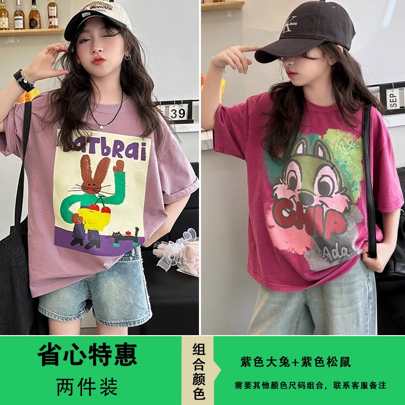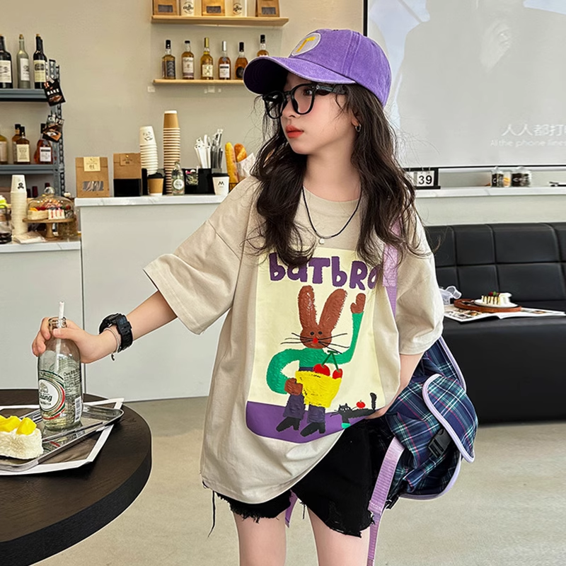 | nameOriginal | 2024 new style girls' medium and large children's loose short-sleeved T-shirts |