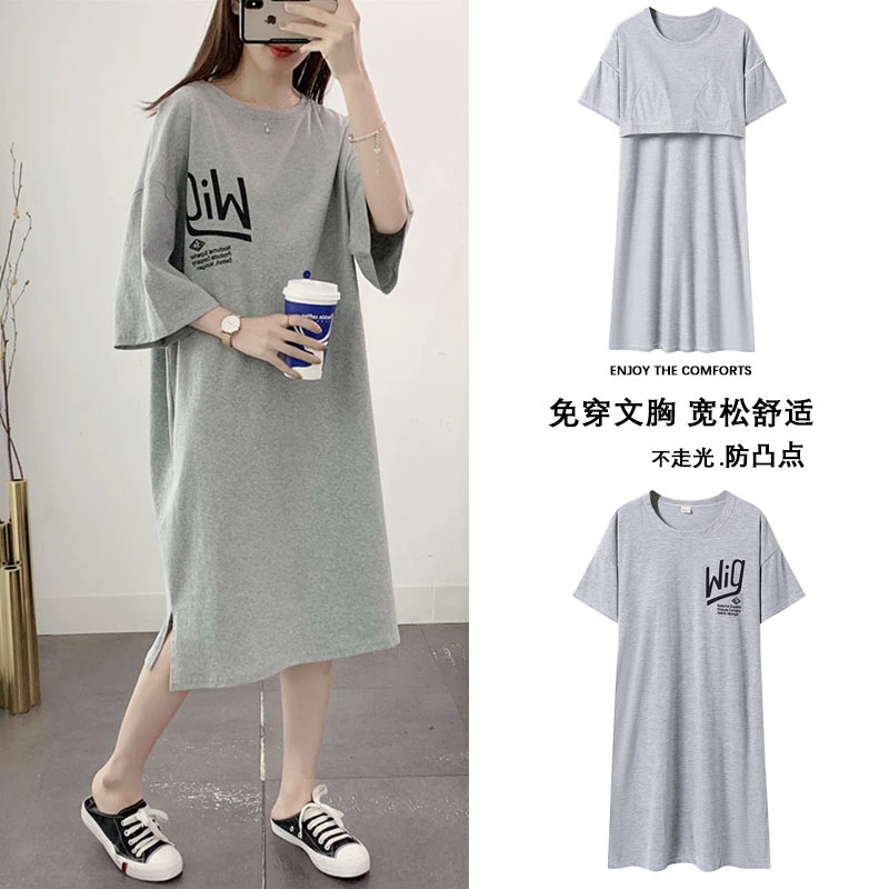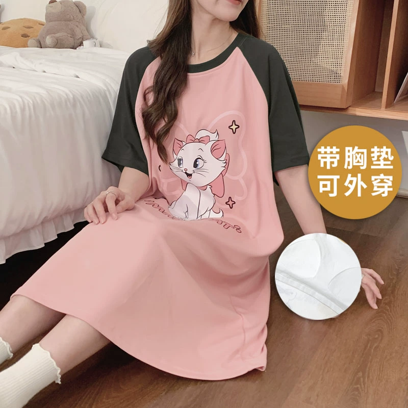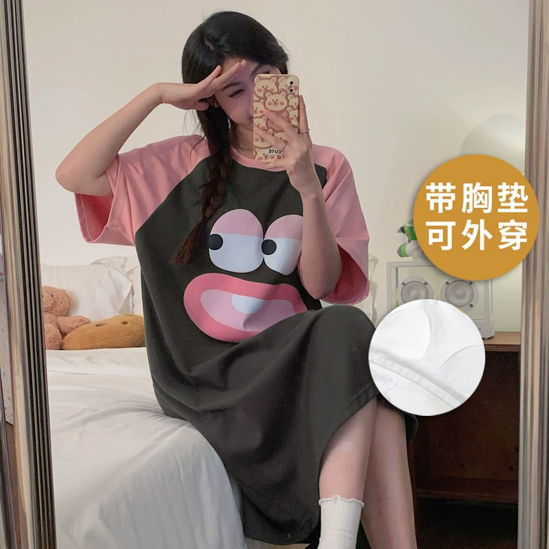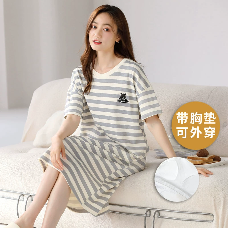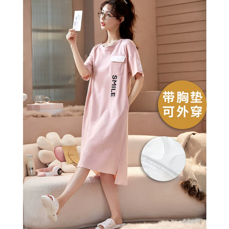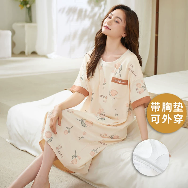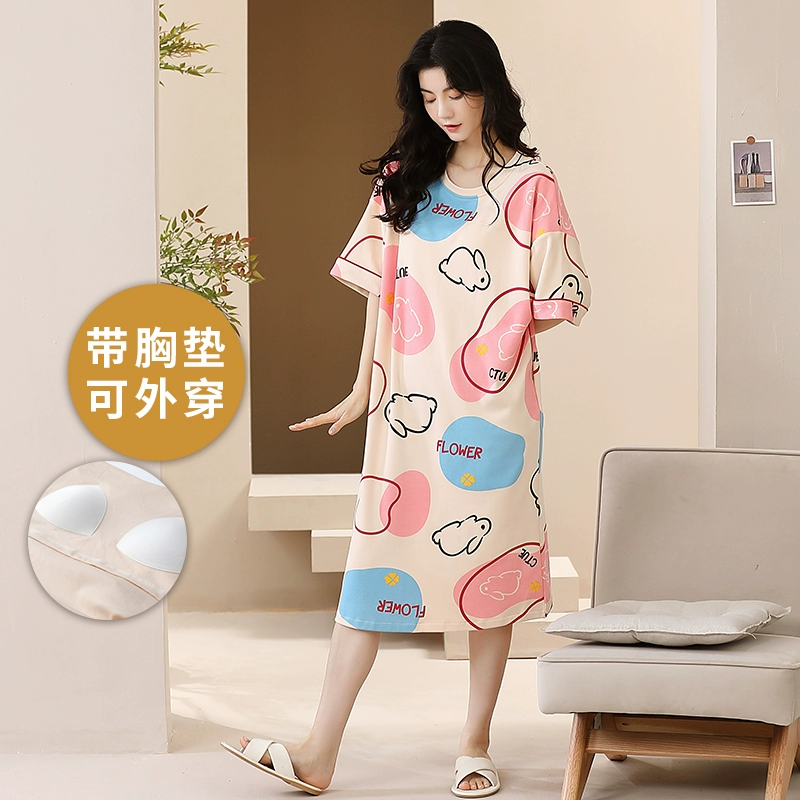 | nameOriginal | 2024 new style nightgown with breast pads for women, summer thin pure cotton pajamas, short-sleeved all-in-one spring and summer best friends can wear outside |