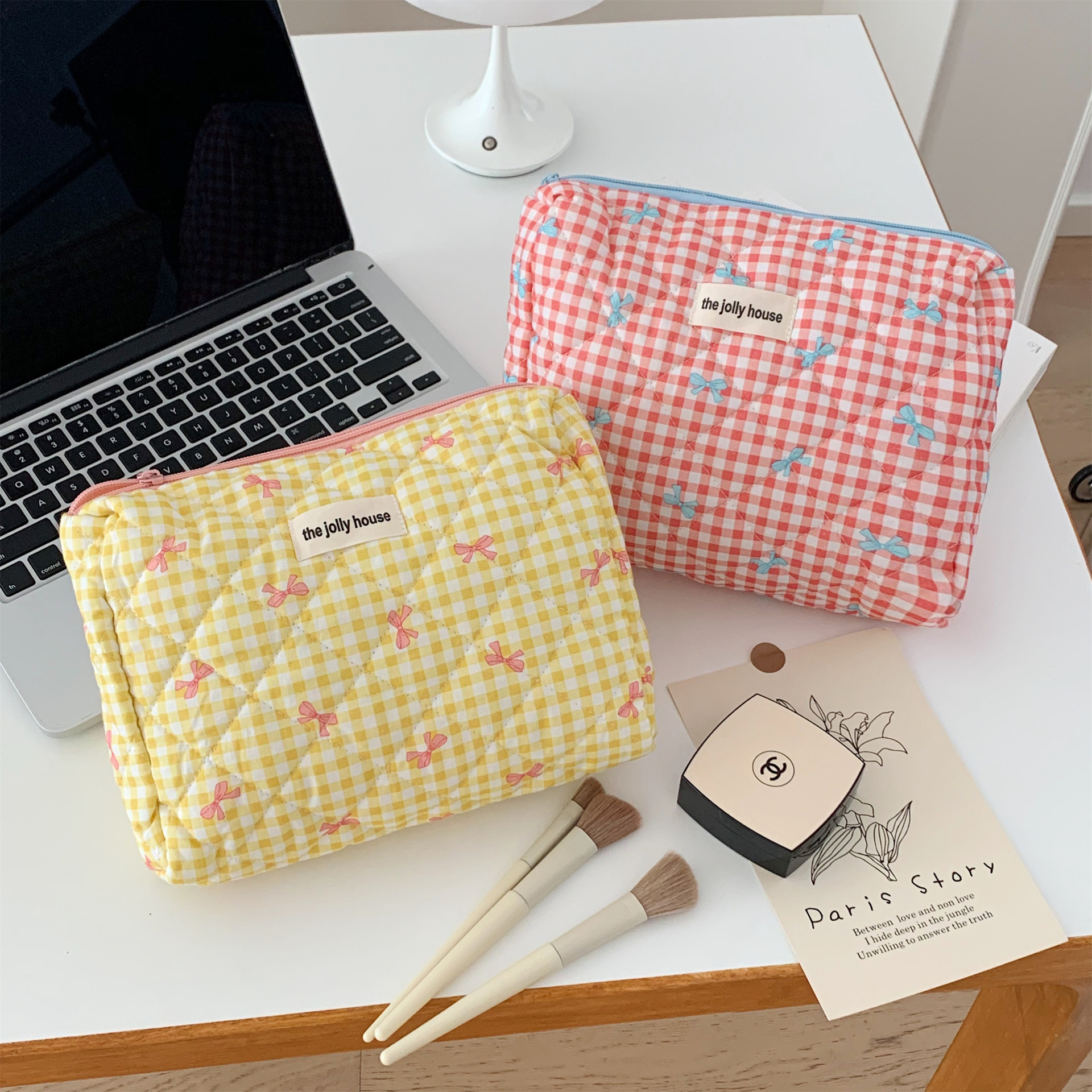 2024 New Style Plaid Bow Makeup Bag High Color Value Large Capacity Portable Travel Wash Storage Bag for Women