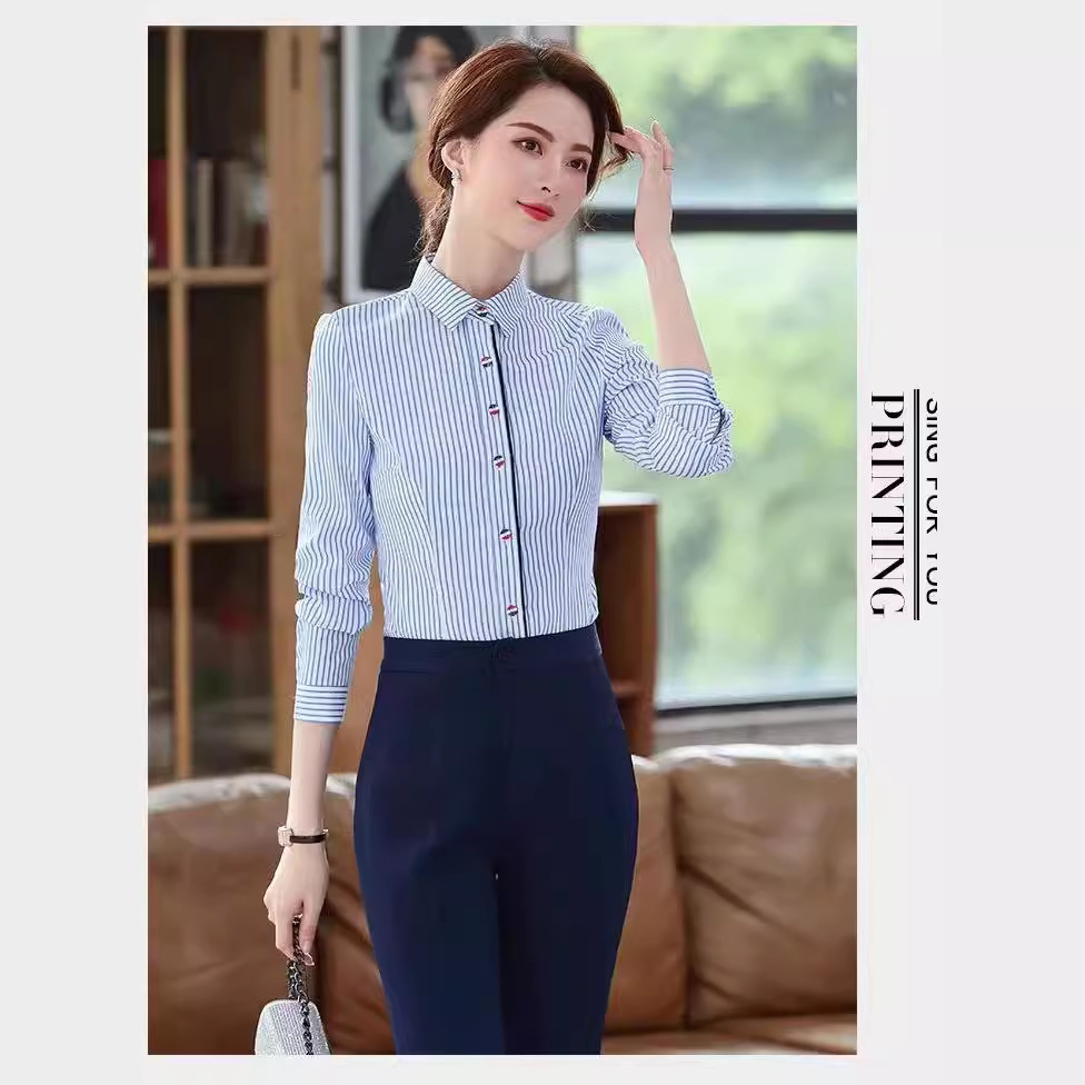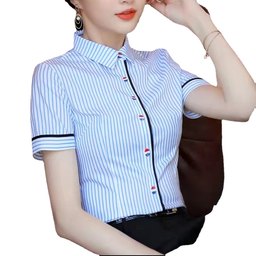 | nameOriginal | 2024 New Style Professional Shirt Women's Blue and White Striped Short-sleeved Elegant Fashionable White-collar Business Shirt Simple and Elegant |