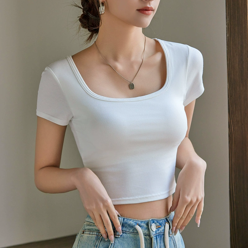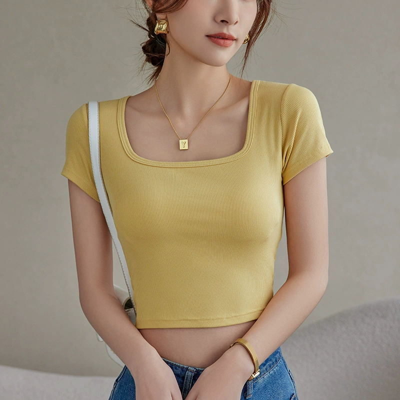 | nameOriginal | 2024 new style solid color short-sleeved T-shirt with chest pad and square collar |