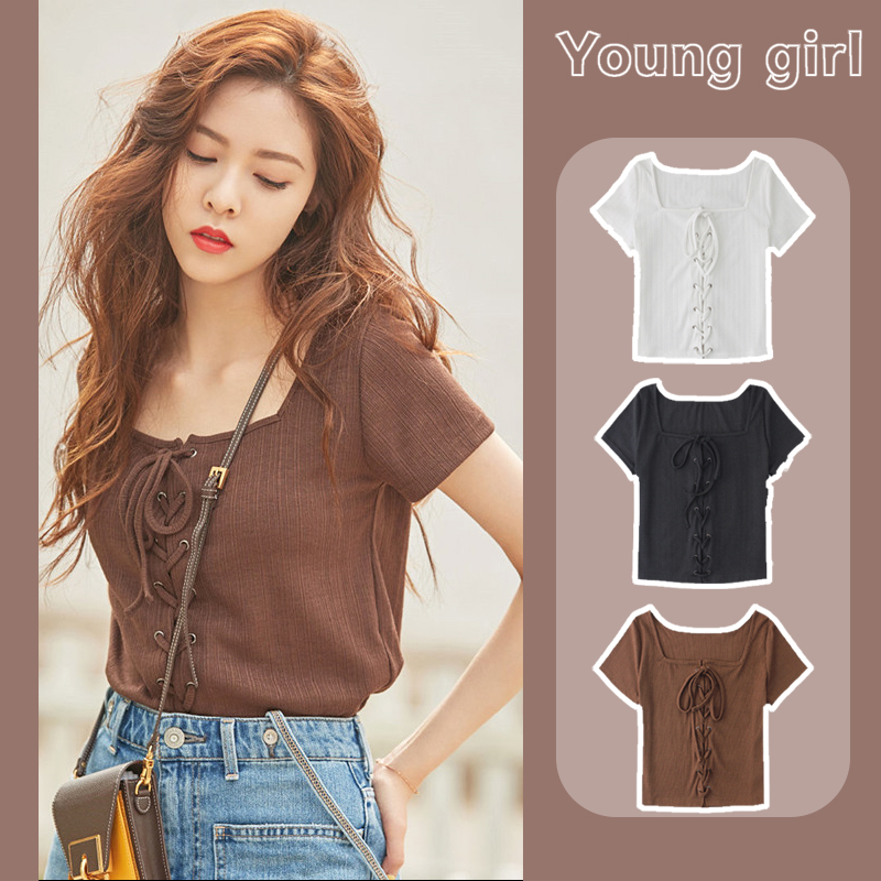 2024 New Style Song Yanfei’s Same Clothes Sweet Square Neck Short Top Summer Design T-Shirt Women’s Short Sleeve Knitted