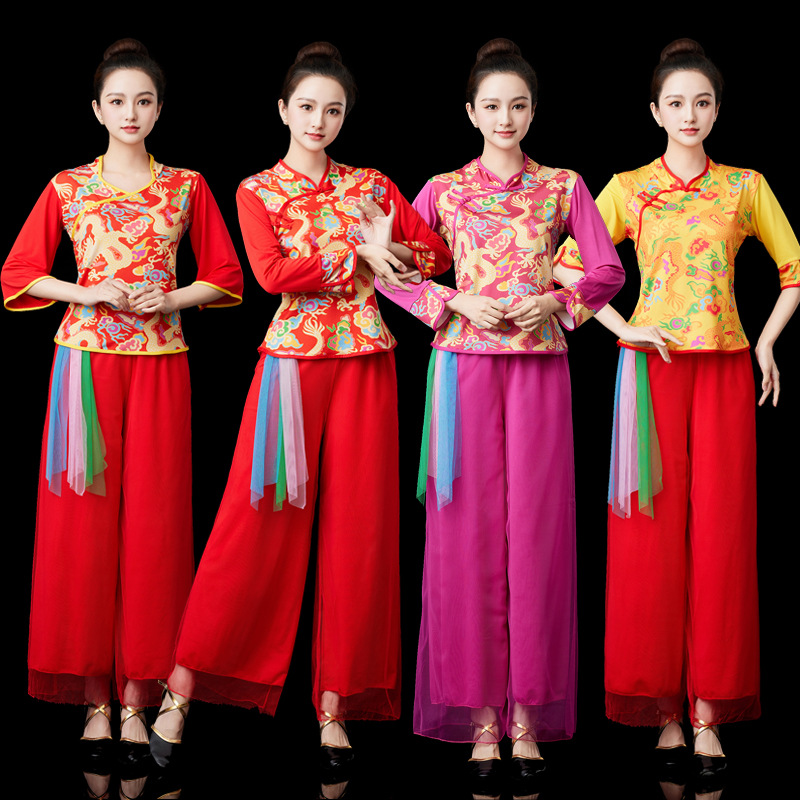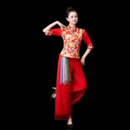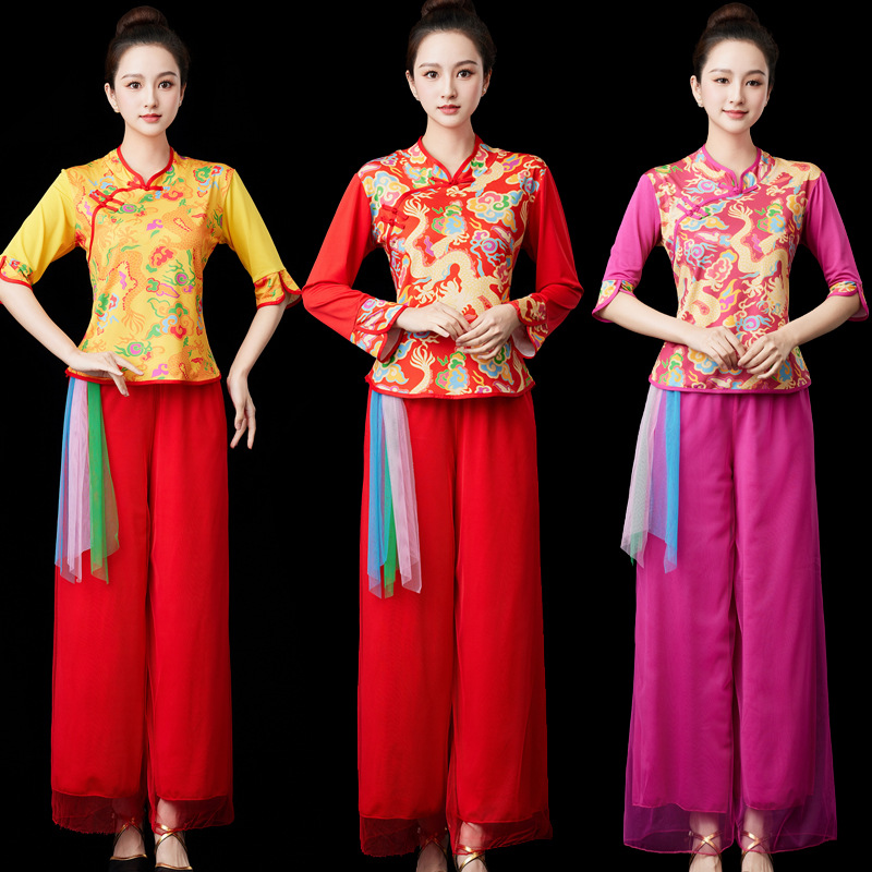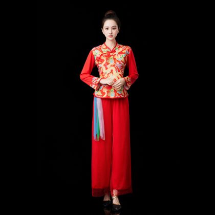 | nameOriginal | 2024 New Style Square Dance Costume Women's Suit Yangko Dance Ethnic Style Retro Dragon Pattern Dancing Suit Drumming Costume |