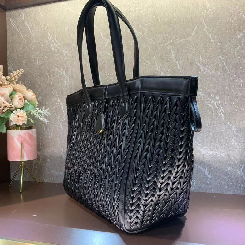 2024 New Style Woven High-end Tote Bag Handmade Interwoven Bucket Bag Handbag Casual All-match Shoulder Bag for Women