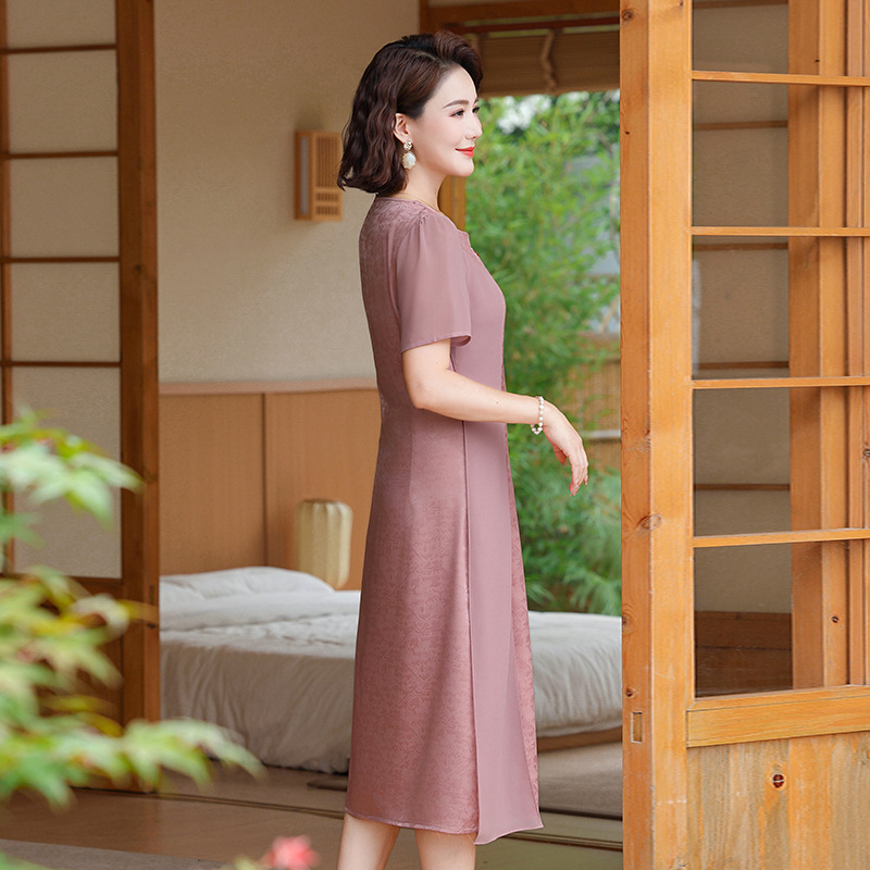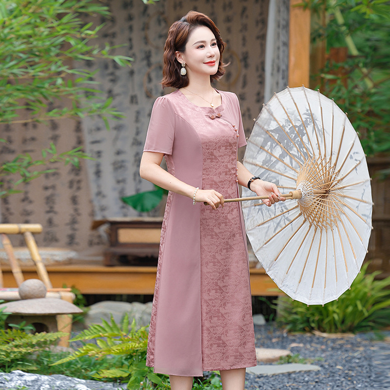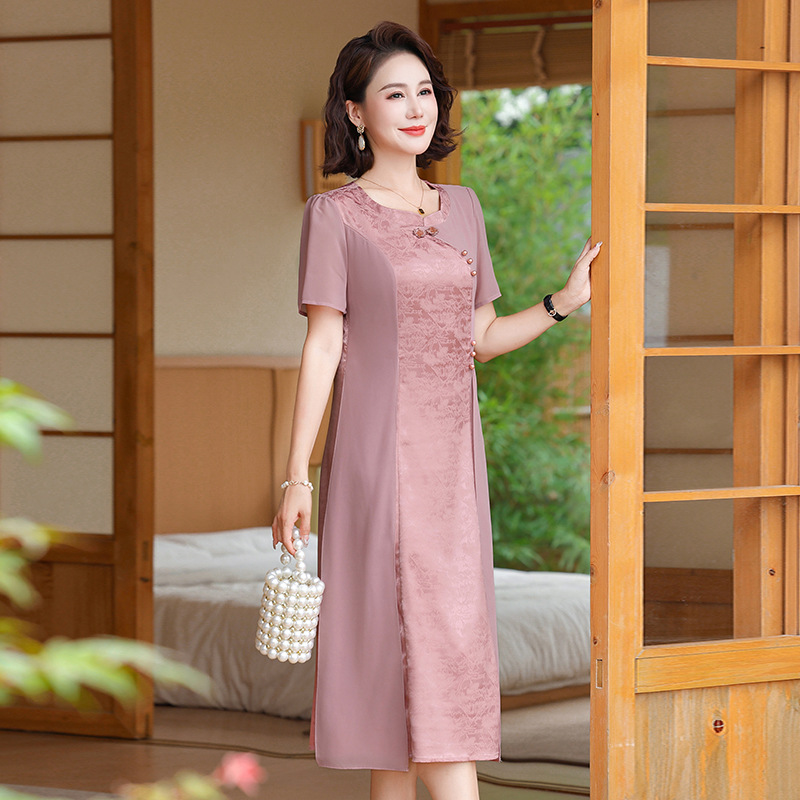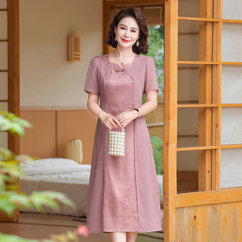 | nameOriginal | 2024 New Summer Chinese Style Improved Western Style Mother Cheongsam dress Temperament Middle-aged and Elderly Short-sleeved National Style Skirt |