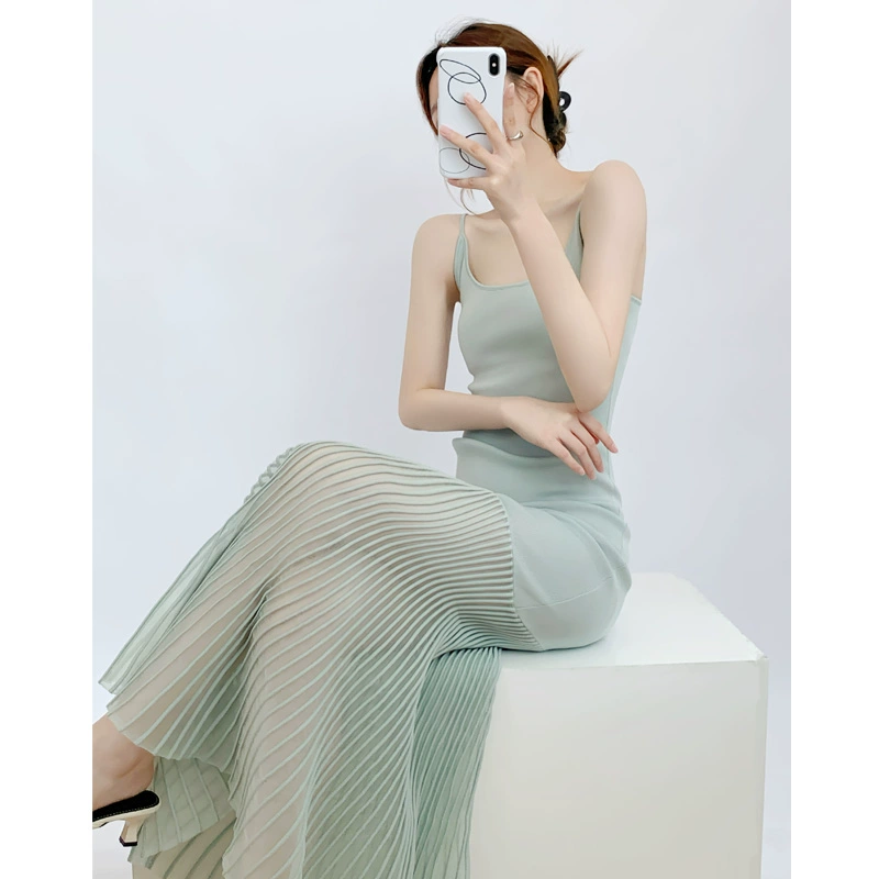 | nameOriginal | 2024 new summer design stitching French resort style knitted long skirt suspender dress sexy fishtail skirt |