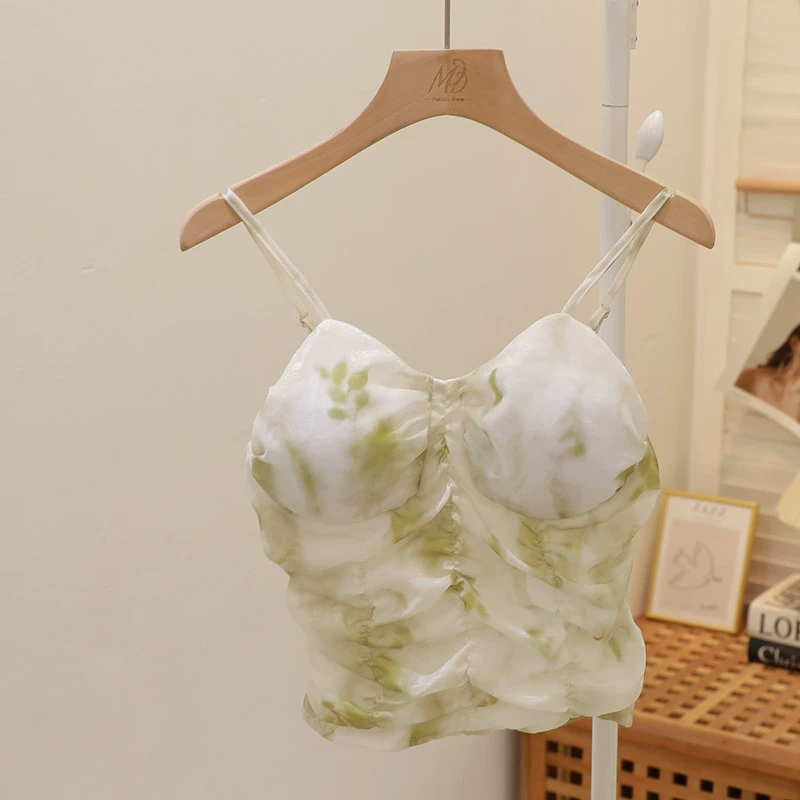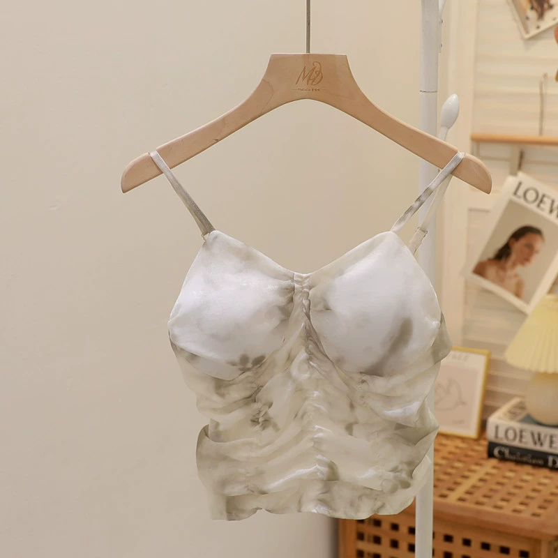 | nameOriginal | 2024 new summer design V-neck off-shoulder short slim-fitting pleated retro smudged camisole for women |