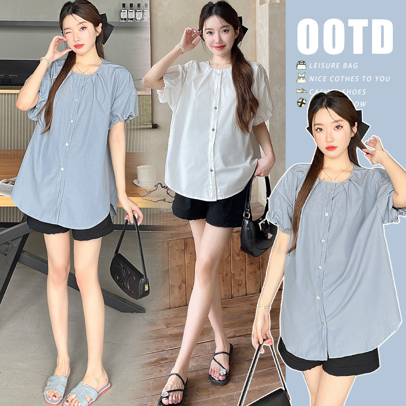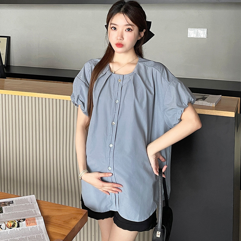 2024 new summer fashion French design shirt belly shorts pregnant mother suit maternity two-piece set