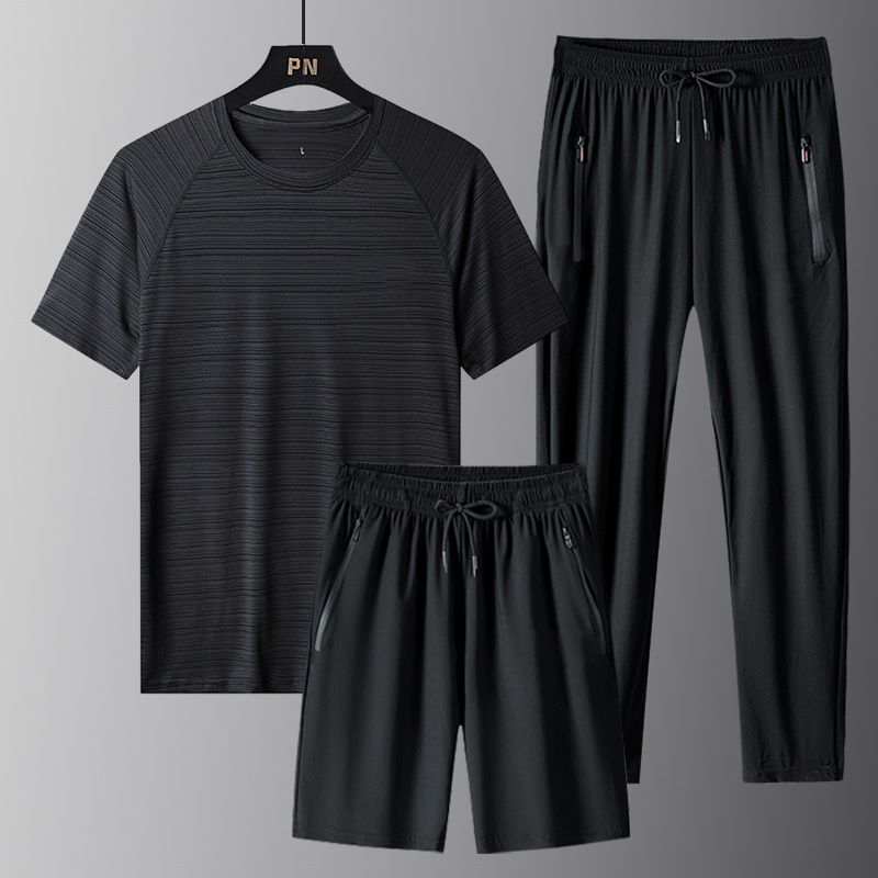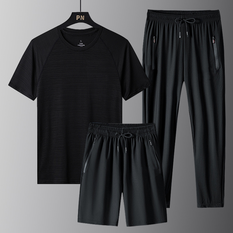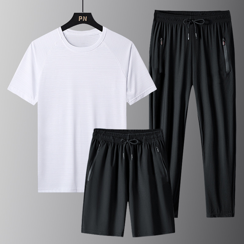 | nameOriginal | 2024 New Summer Ice Silk Sports suit Men's Three-Piece Set Quick-Drying Crewneck T-Shirt Men's Short-Sleeved Casual Lightweight |