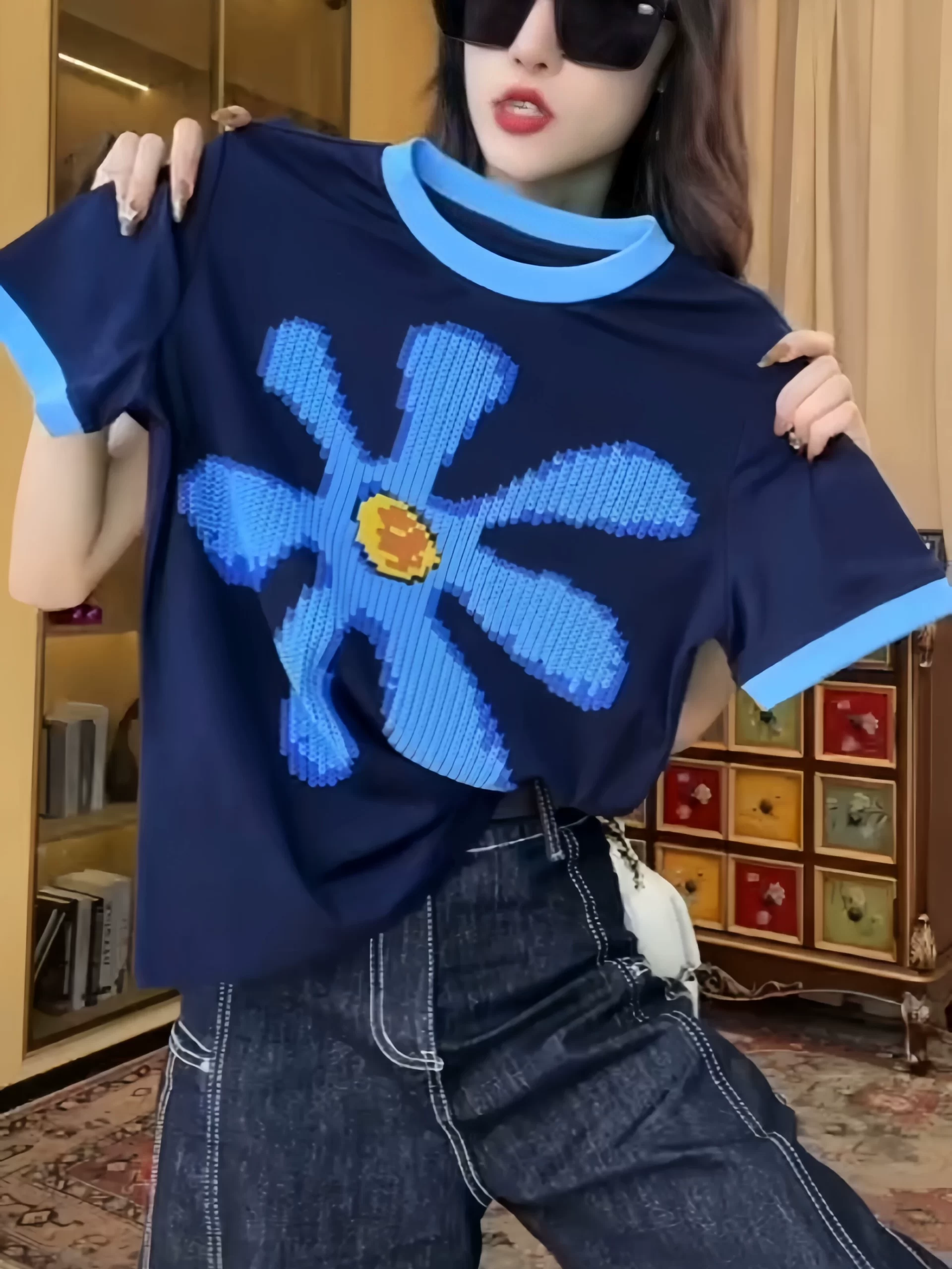 | nameOriginal | 2024 new summer Korean style round neck printed short-sleeved women's T-shirt versatile mid-length loose casual top women's trend |