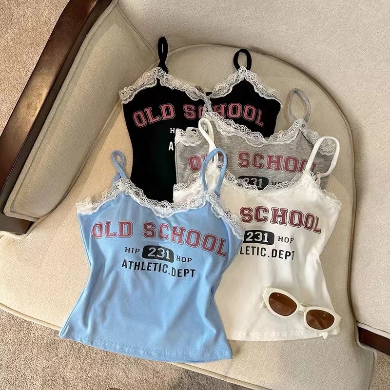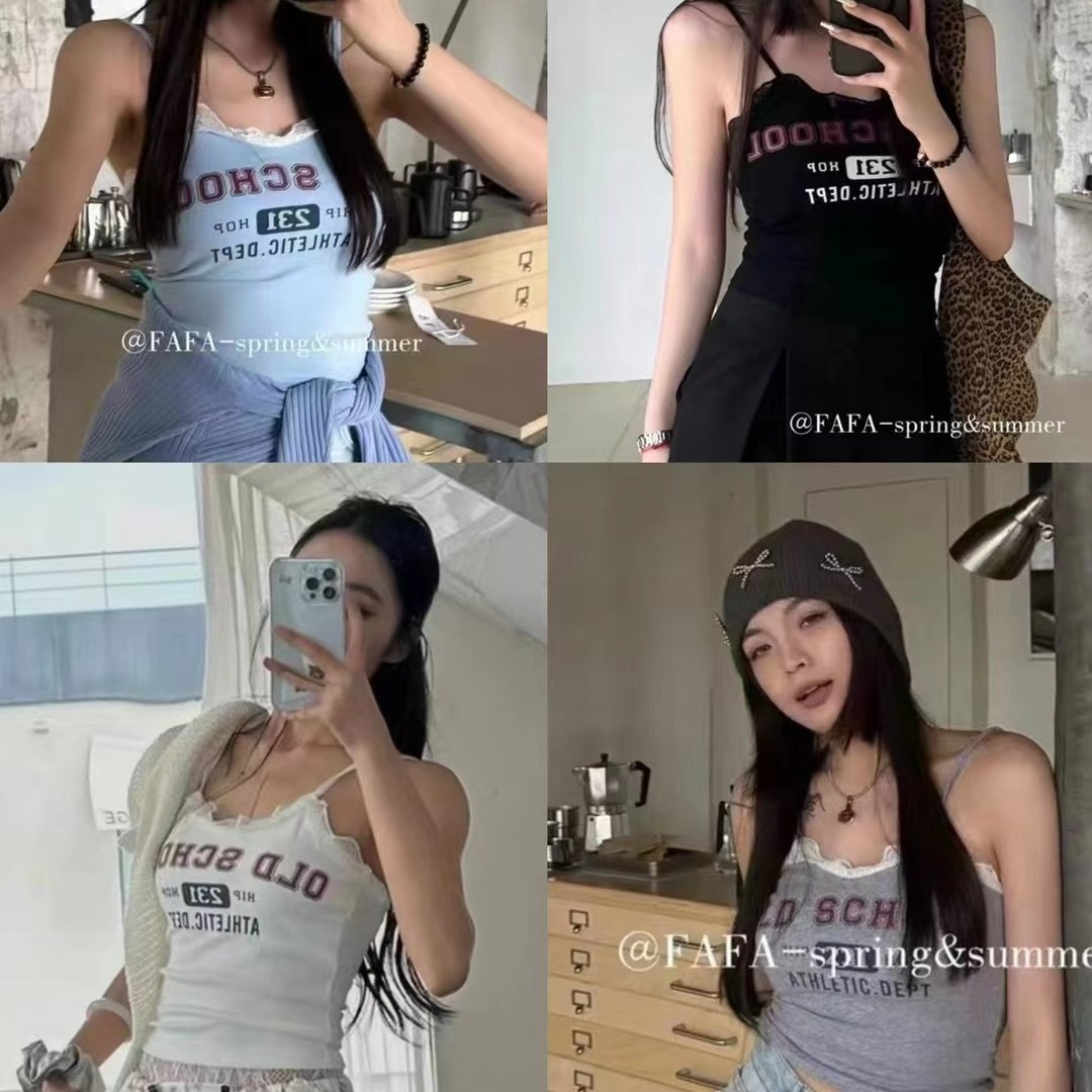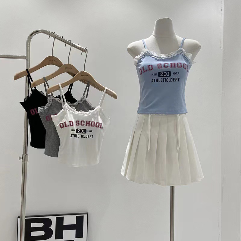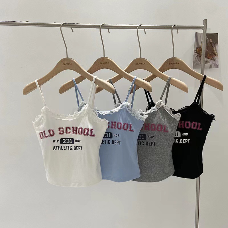 | nameOriginal | 2024 New Summer Korean Style Sweet Spice Girl Letter Printed Camisole Women's Lace Slim-fit Slim-fit Top |