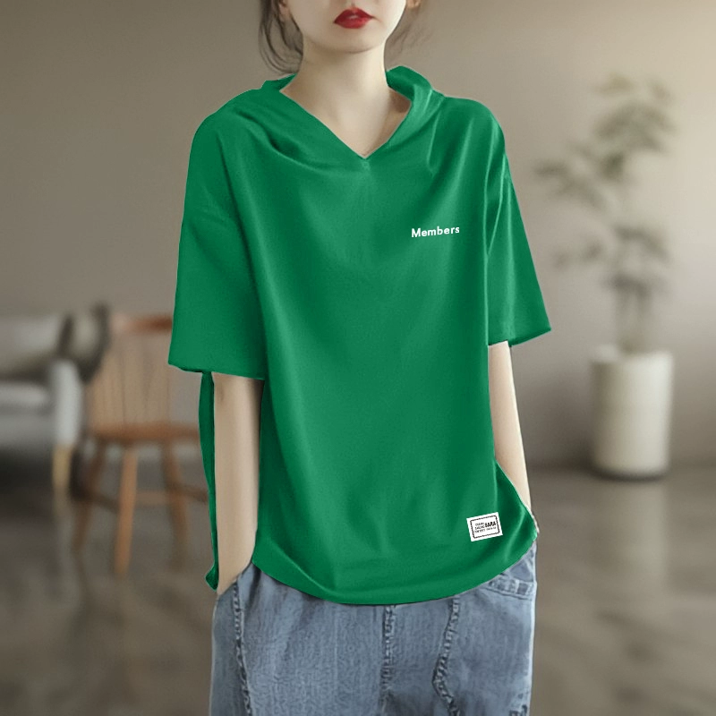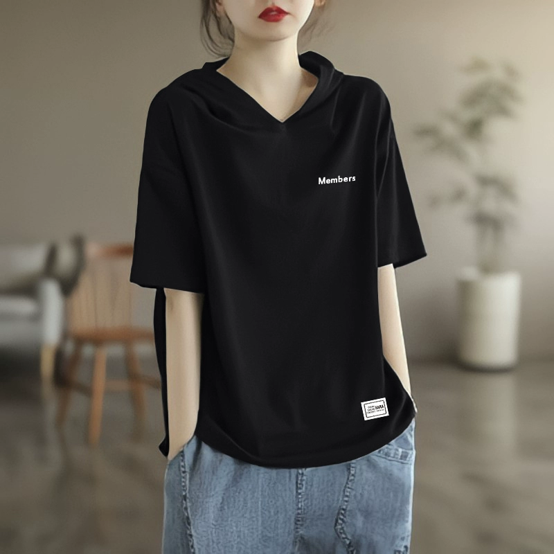 | nameOriginal | 2024 new summer pure cotton hooded short-sleeved T-shirt women's loose large size slimming belly-covering hot shoulder top |