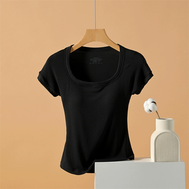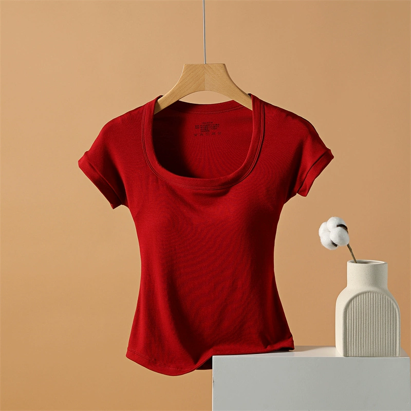 2024 new summer shoulder slim thin short -sleeved T -shirt