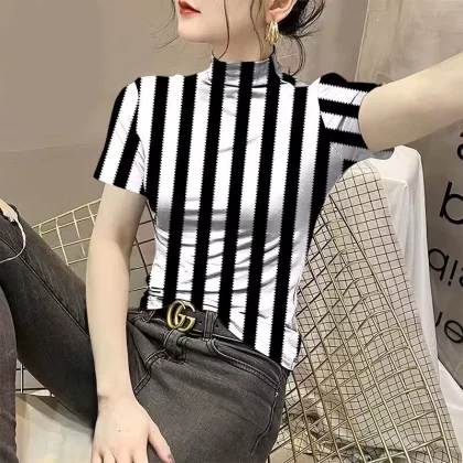 | nameOriginal | 2024 new summer slim half turtleneck plaid short sleeves |