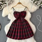 | nameOriginal | 2024 new summer style dark rock sweet cool red and black plaid suspender skirt pleated skirt girl hot girl dress ins |