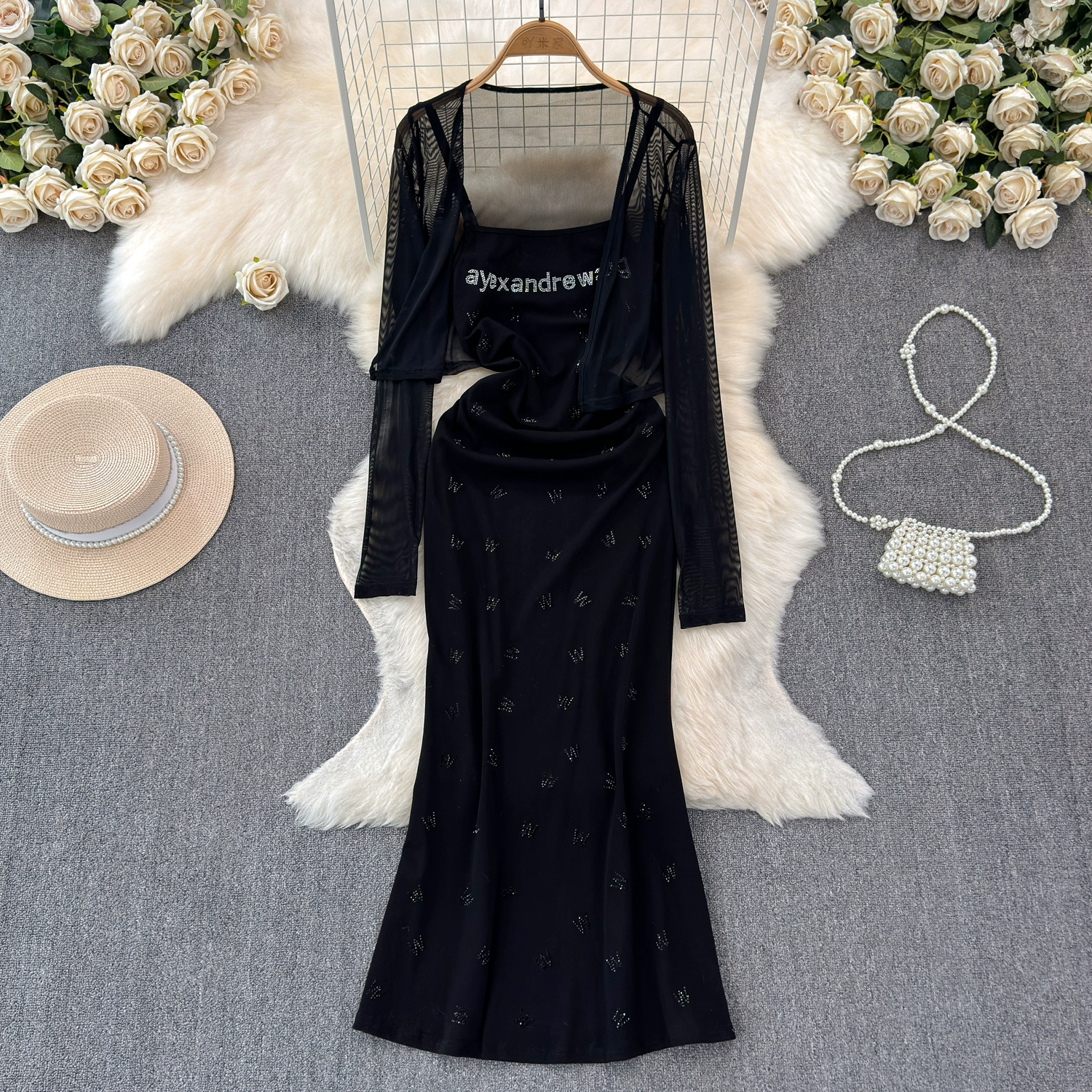 | nameOriginal | 2024 new summer style fashionable French retro dress sun protection long-sleeved cardigan two-piece set for women |