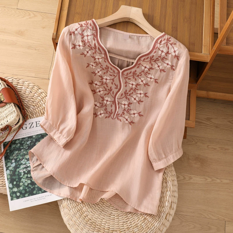 | nameOriginal | 2024 new summer style retro linen short sleeves thin embroidery |