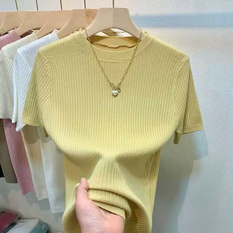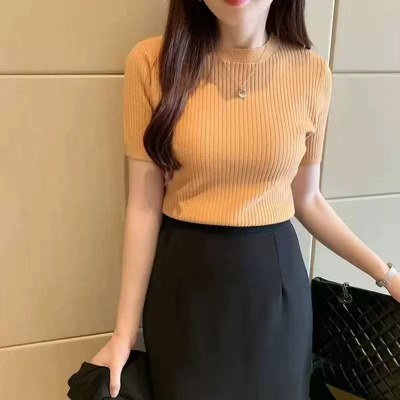 | nameOriginal | 2024 new summer style slim-fitting sweater short-sleeved tops women's pullover sweater with short round neck bottoming shirt |
