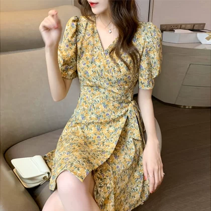 | nameOriginal | 2024 new summer style super fairy style waist slimming V-neck floral one-piece large hem short-sleeved dress for women ins |