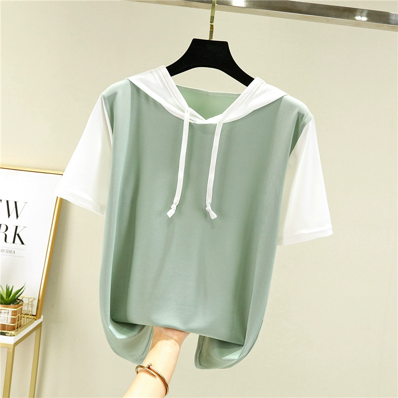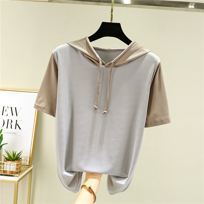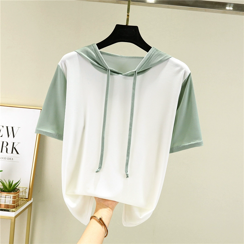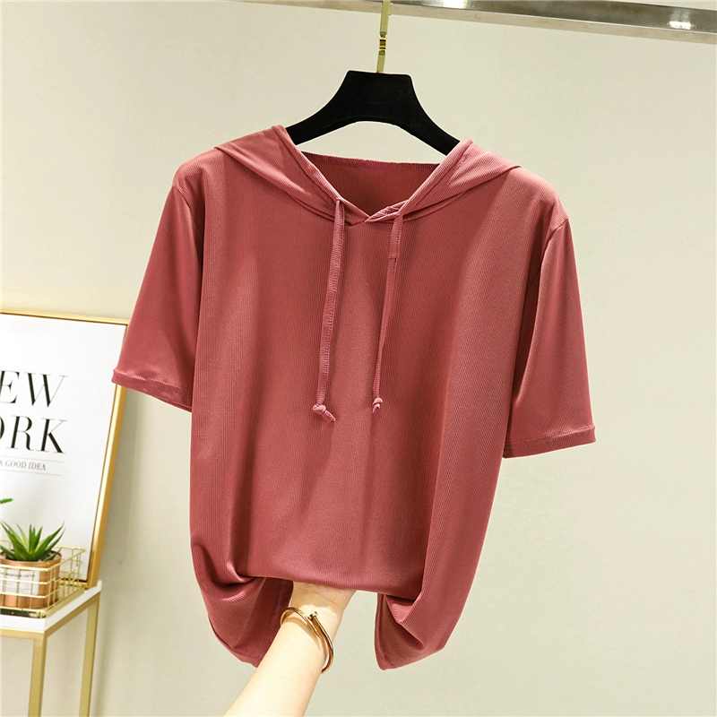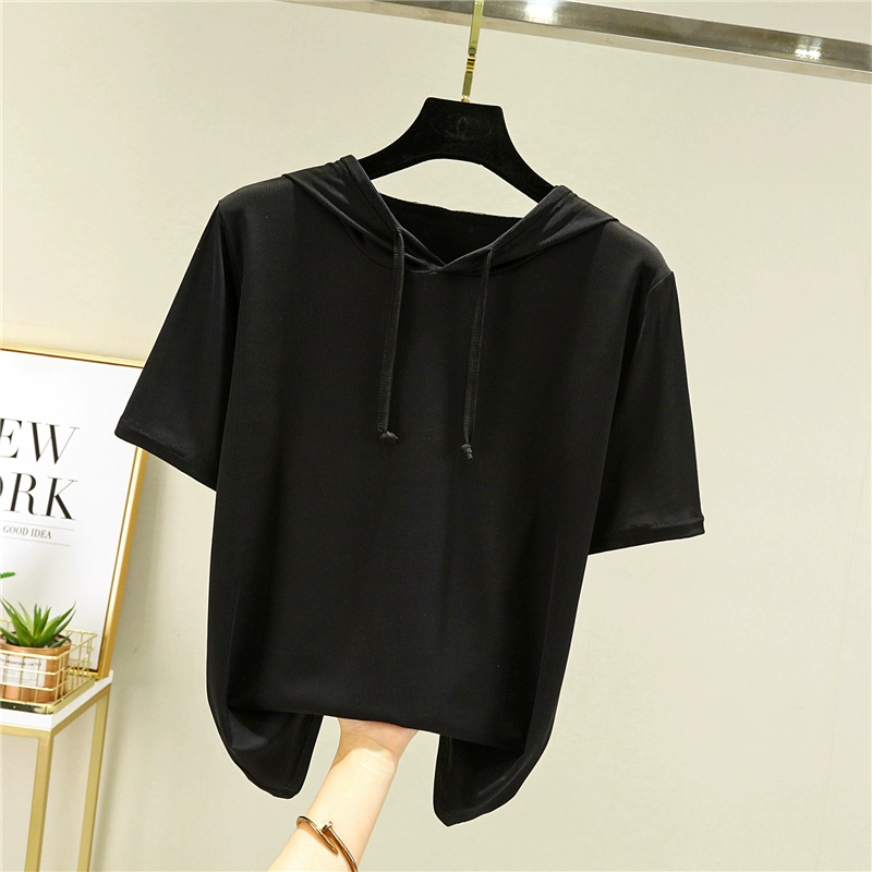 2024 new summer style thin ice silk hooded short-sleeved T-shirt for women with loose inner style half-sleeved bottoming shirt top