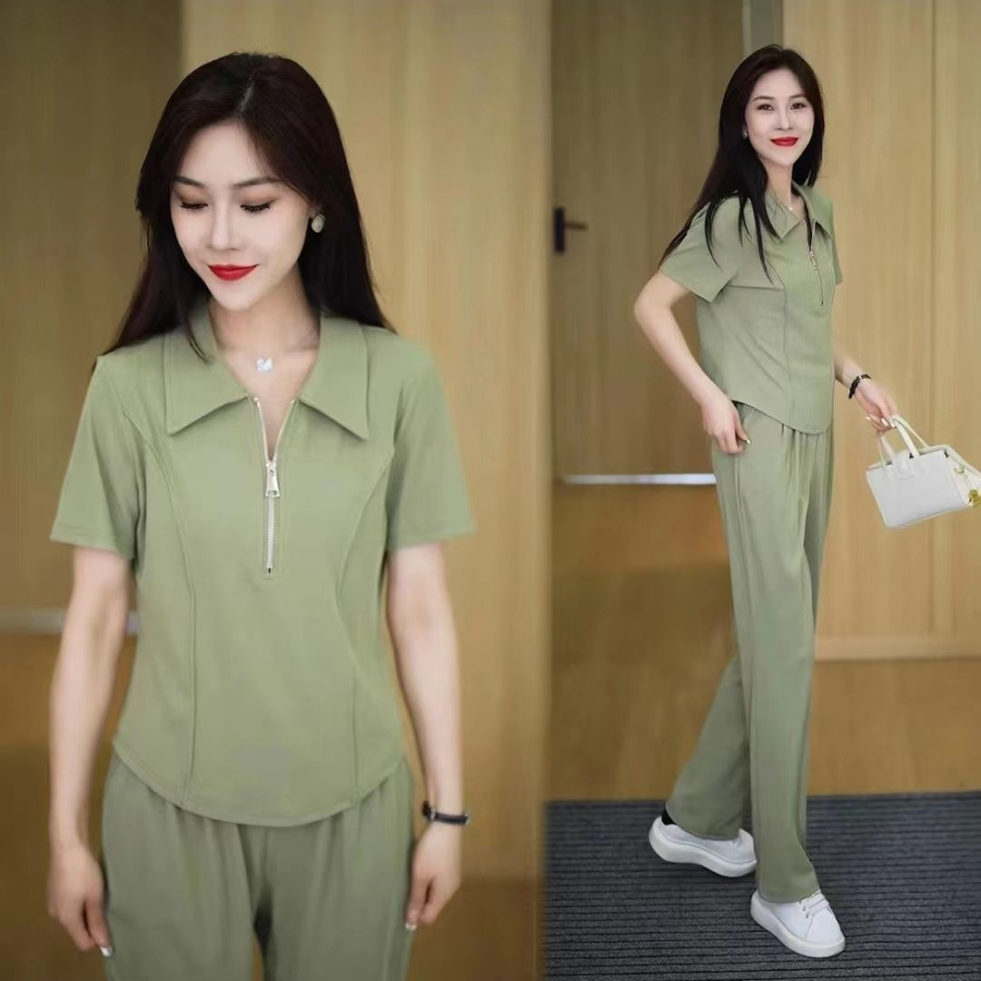 | nameOriginal | 2024 New Summer Thin Western Style Fashionable Slimming Casual Sports Zipper Top Wide Leg Pants Set Two-piece Set |