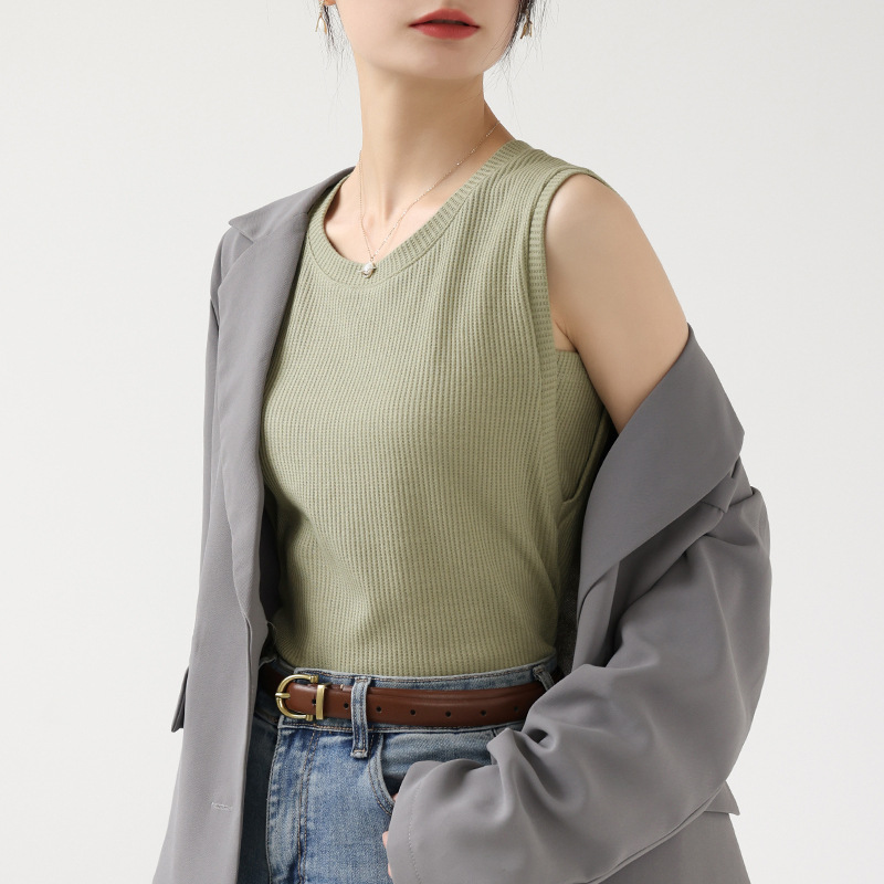 | nameOriginal | 2024 New Summer Waffle Suit Inner Base Shirt Sling Vest Women's Covering Paramilis Outer Wear Sleeveless Top |