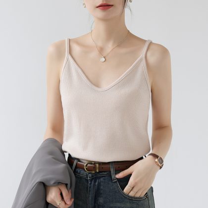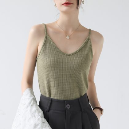 | nameOriginal | 2024 New Summer Waffle Suit Inner Base Shirt Sling Vest Women's Covering Paramilis Outer Wear Sleeveless Top |