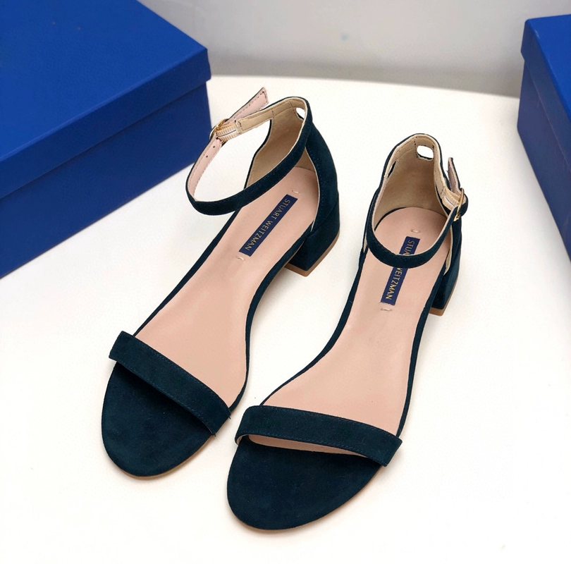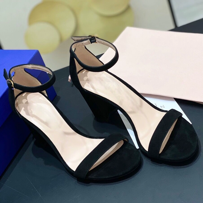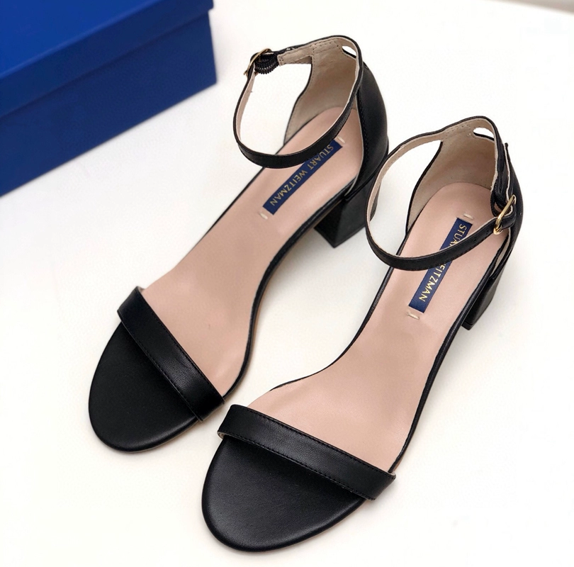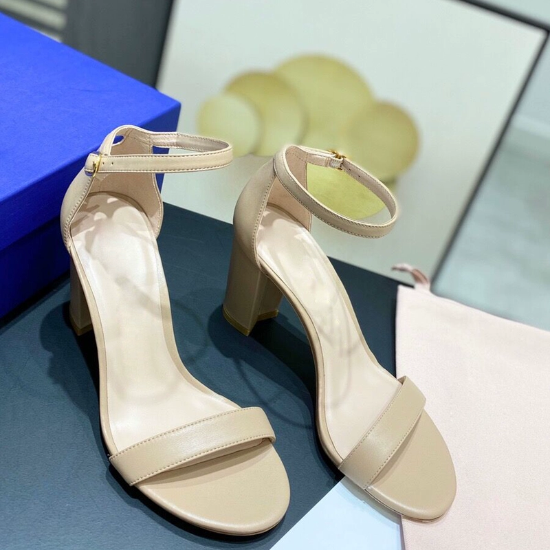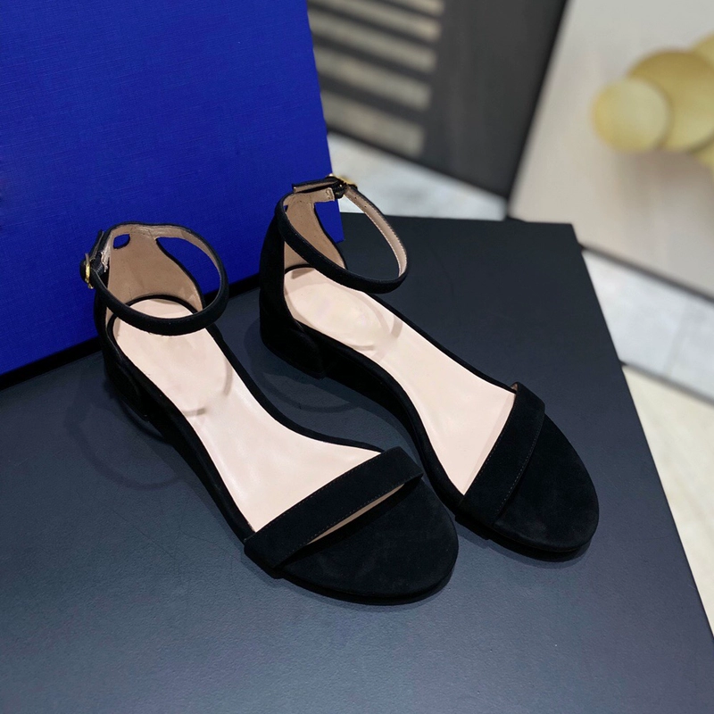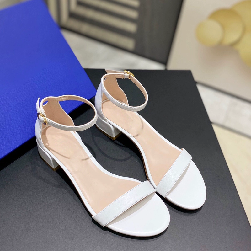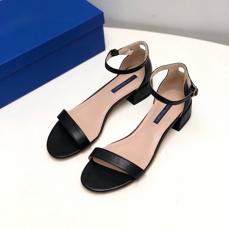2024 new SW export pure original strap sandals open toe square toe comfortable thick heel leather high heel summer women's shoes