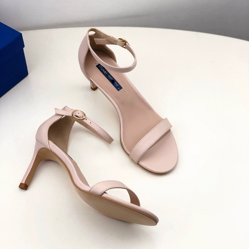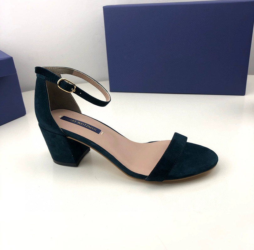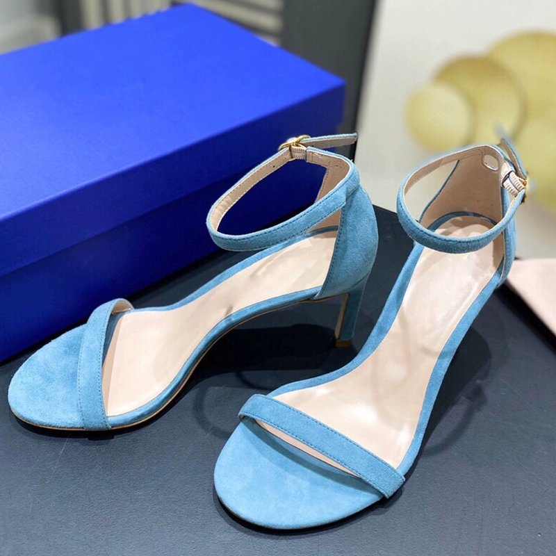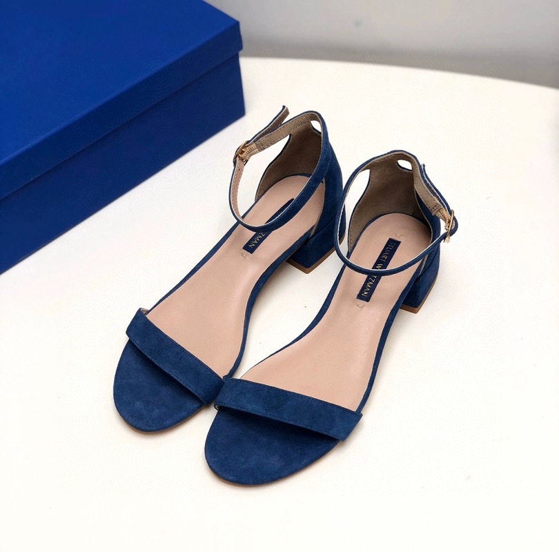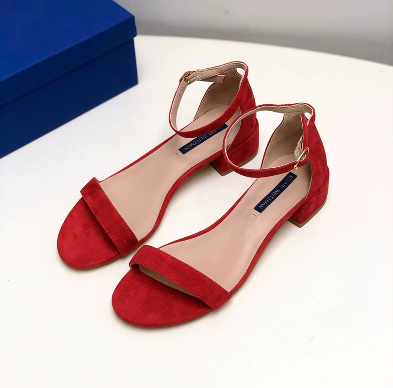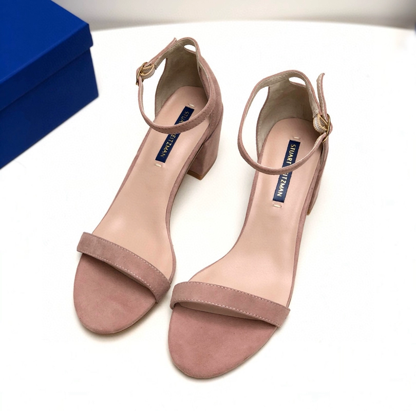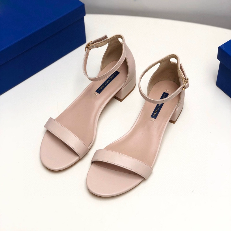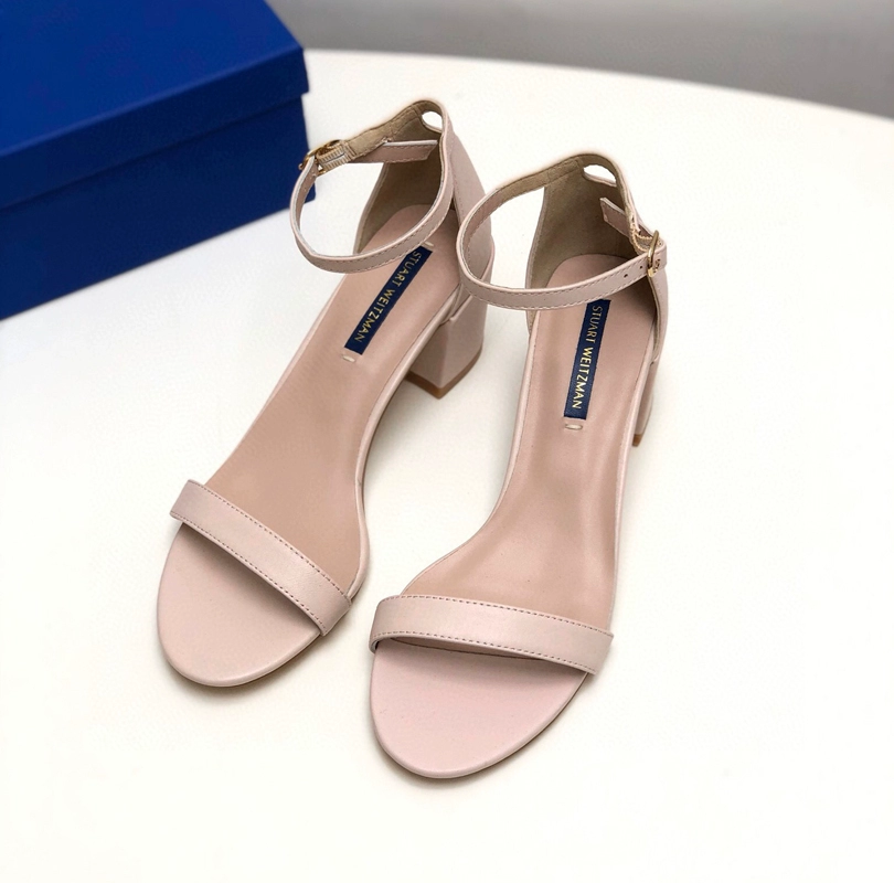 2024 new SW export pure original strap sandals open toe square toe comfortable thick heel leather high heel summer women's shoes