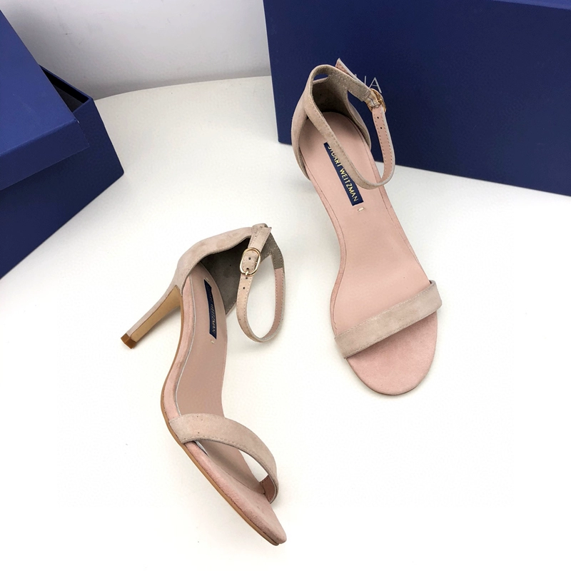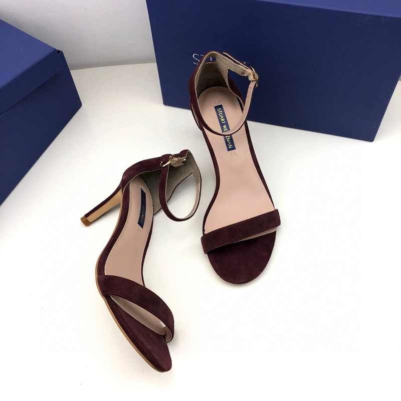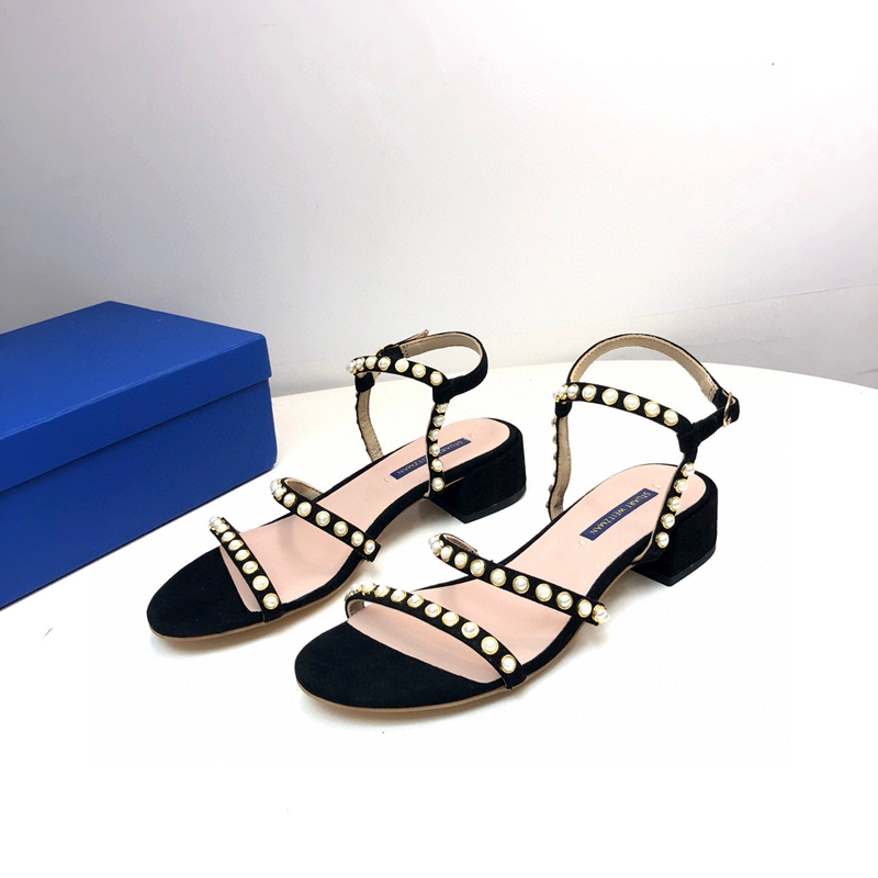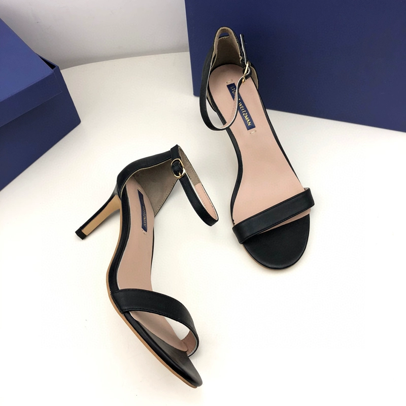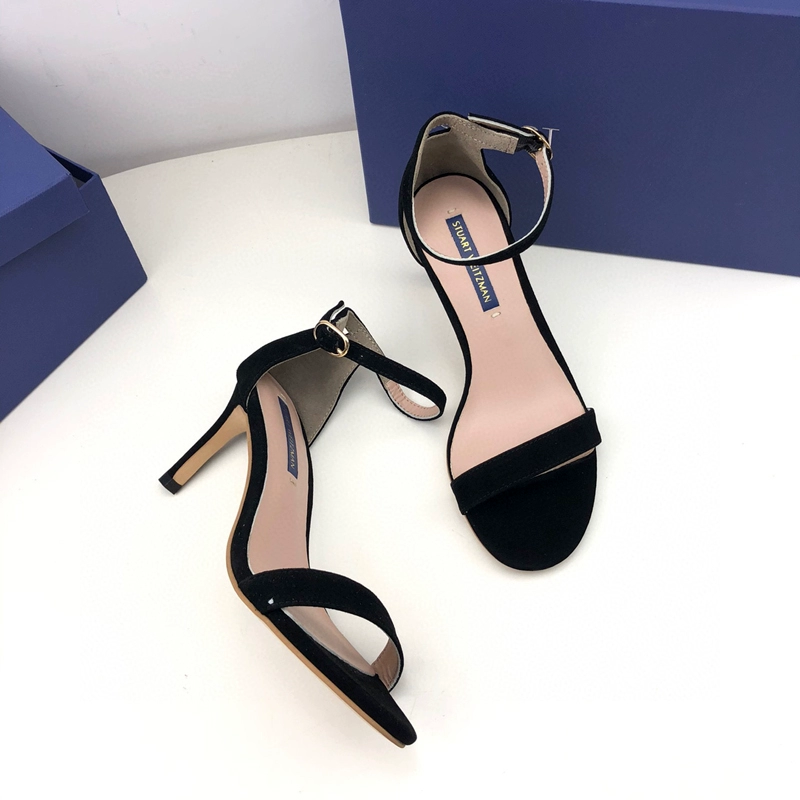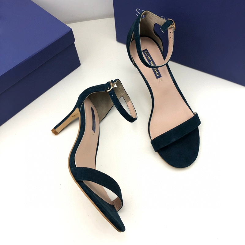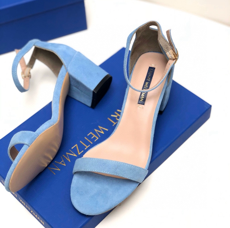 2024 new SW export pure original strap sandals open toe square toe comfortable thick heel leather high heel summer women's shoes