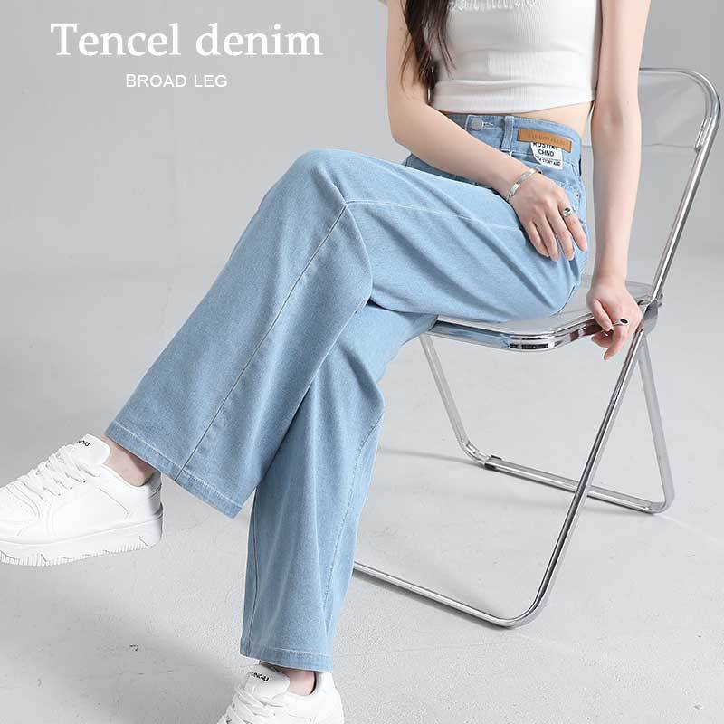 | nameOriginal | 2024 New tencel jeans women's pants loose straight high waist draping small cropped ice silk wide leg pants |