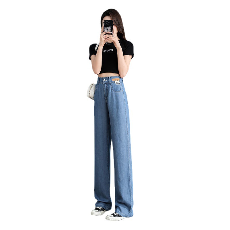 2024 New tencel jeans women’s pants summer loose straight high waist small cropped ice silk wide leg pants