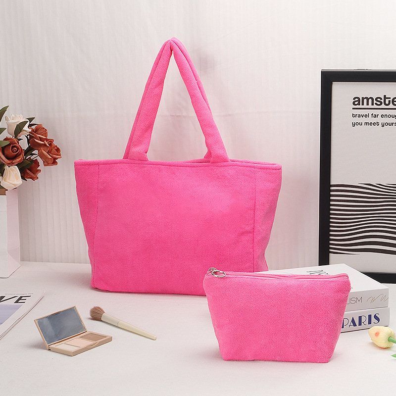 | nameOriginal | 2024 new terry cloth cosmetic bag large capacity high color value portable pink tote bag handbag a batch |
