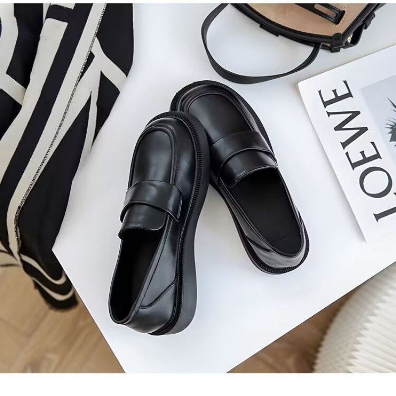 2024 New Thick-soled Shoes Spring British-style Slip-on Loafers Women’s Cross-border