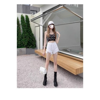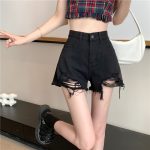 2024 New Thin Denim Shorts Women’s Summer Ins Style Small Internet Celebrity Rough Edge Ripped High Waist A- shaped Wide-leg Hot Pants
