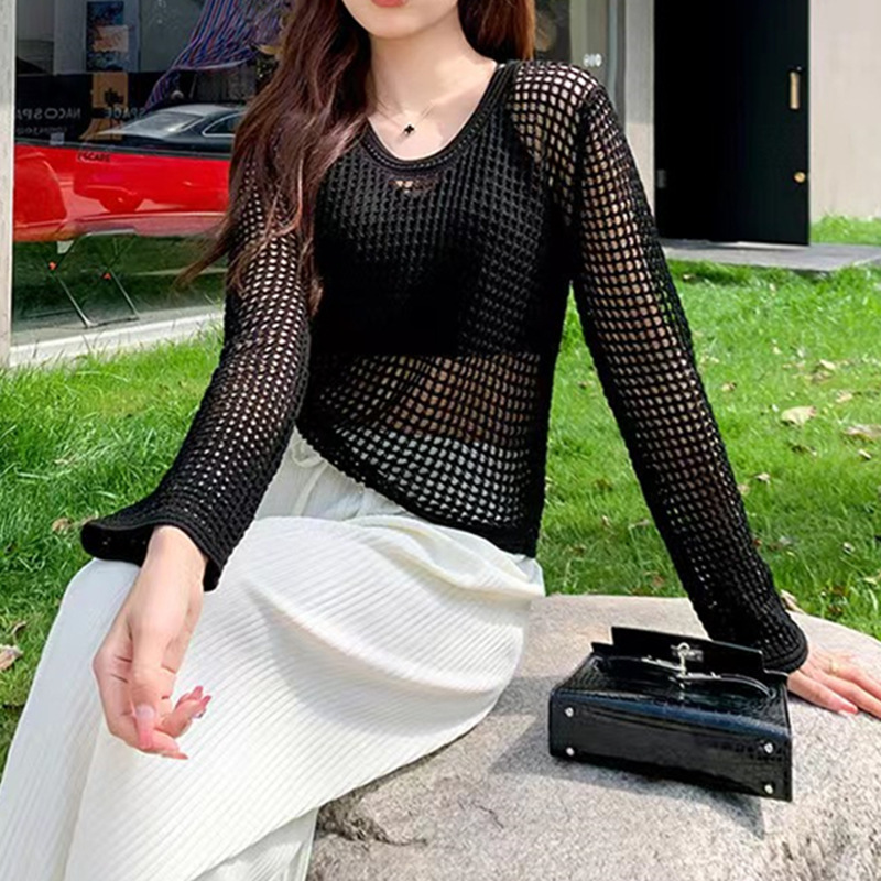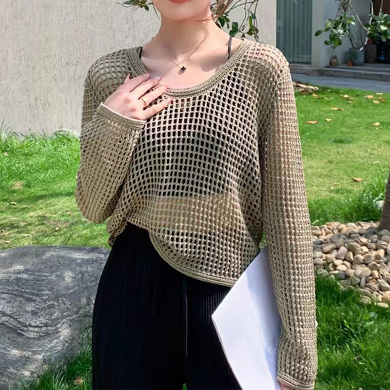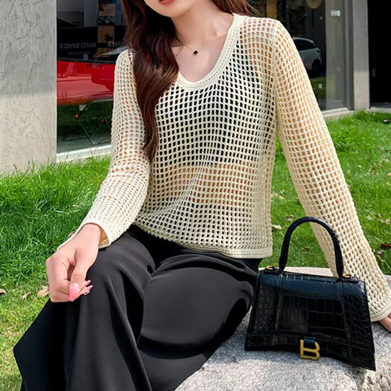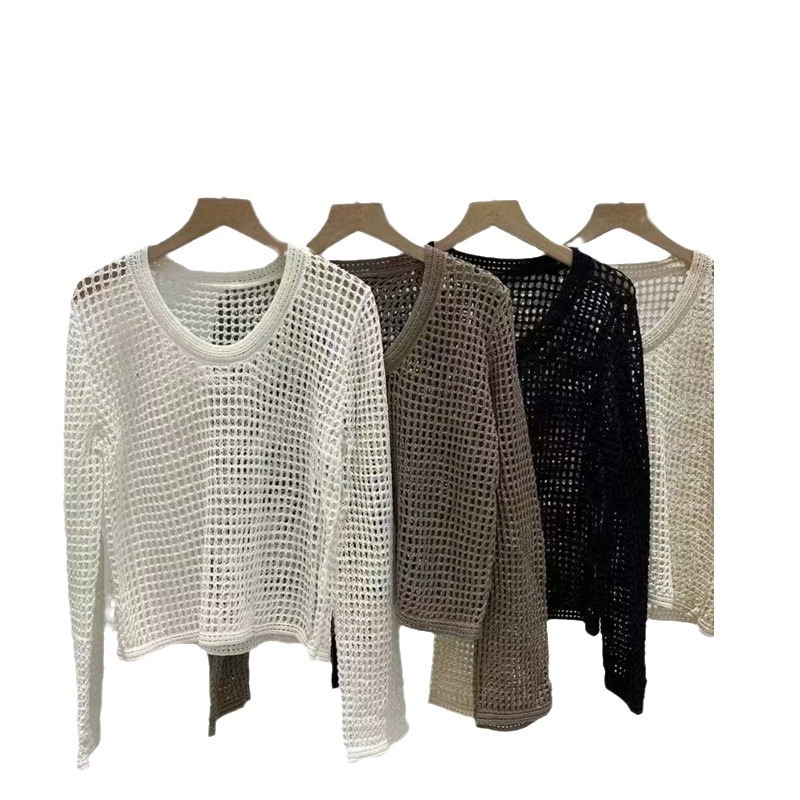 | nameOriginal | 2024 New Thin Round Neck Long Sleeve Loose Pullover All-match Top Fashion Blouse Spring and Summer Hollow Knit Sweater for Women |