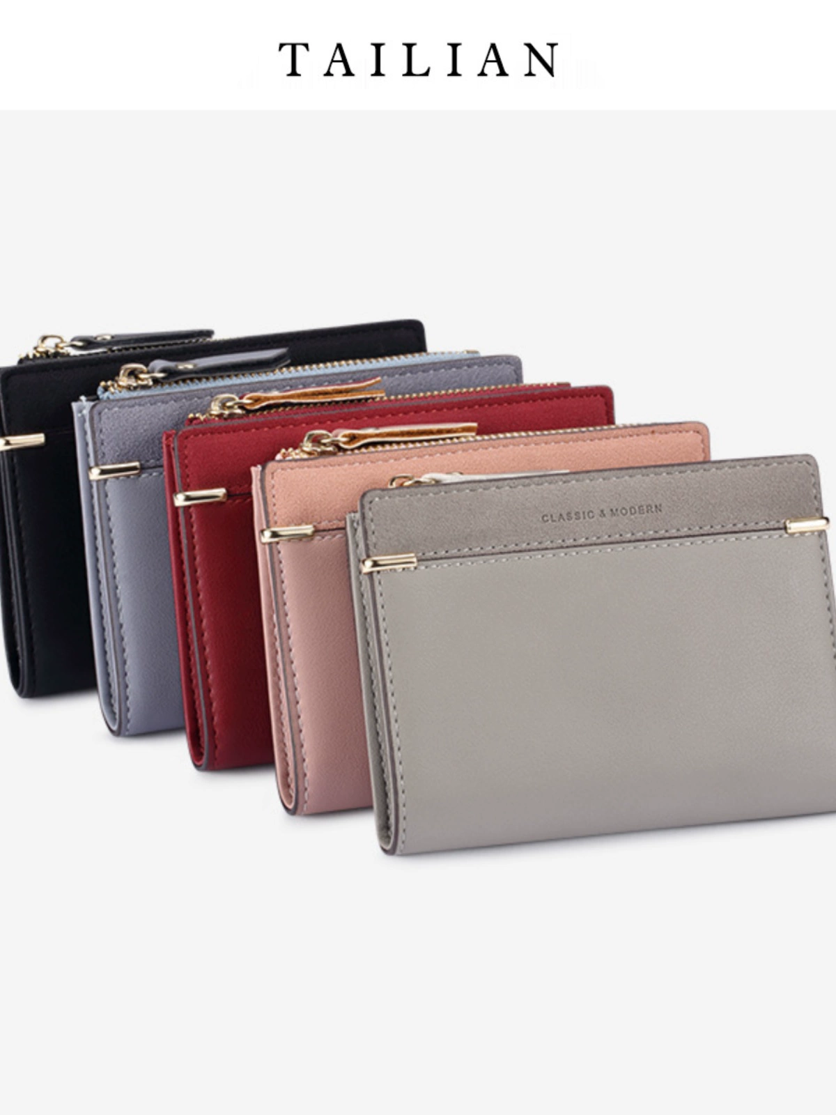 2024 new thin short style compact zipper folded in half student ladies wallet wallet simple card holder short clip