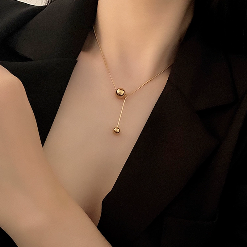 | nameOriginal | 2024 new titanium steel golden ball necklace for women, high-end, light luxury, niche design, cold style clavicle chain |