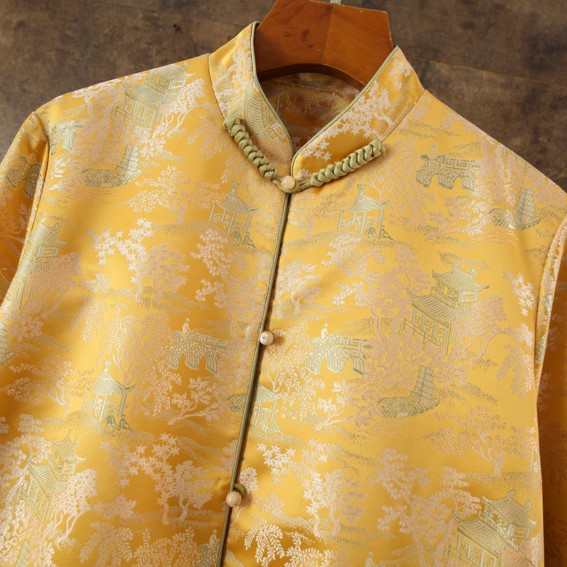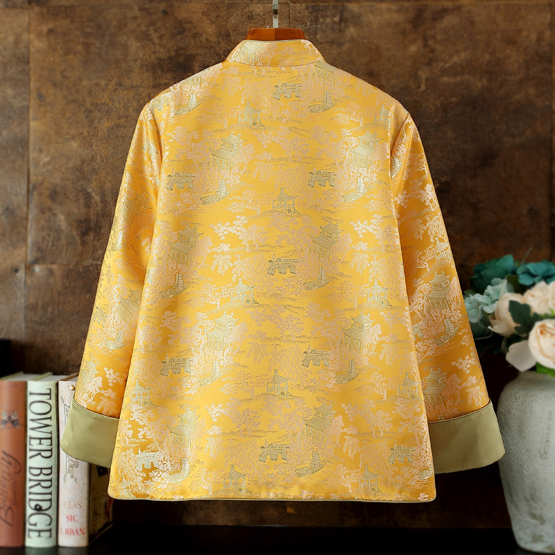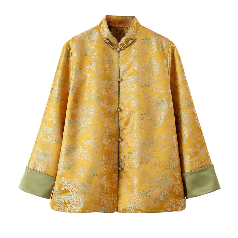 2024 new top buckle straight placket contrast color stitching retro stand collar slim plus size short coat spring and autumn Tang suit