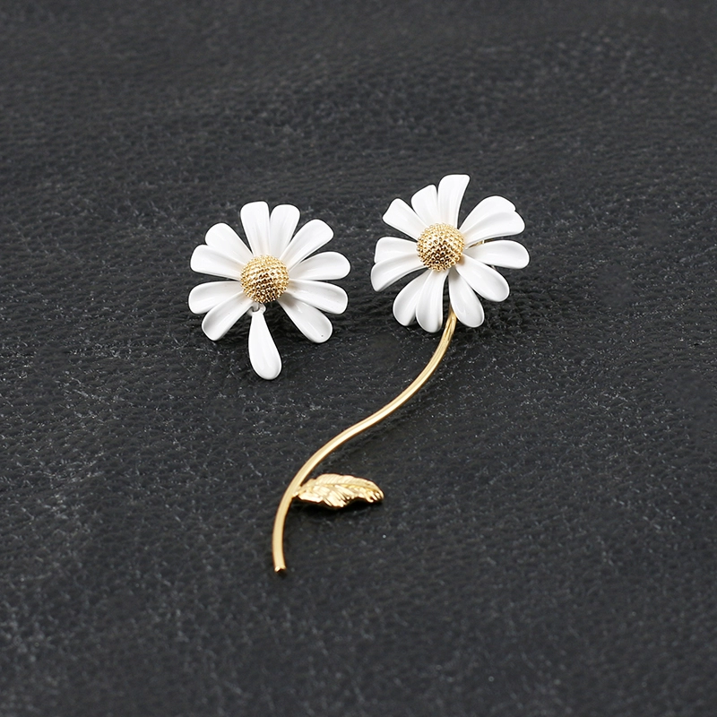 2024 New Trendy Electroplated Silver Needle Tassel Asymmetric Ear Wire Women’s Daisy Ear Stud Earrings High-end Earrings